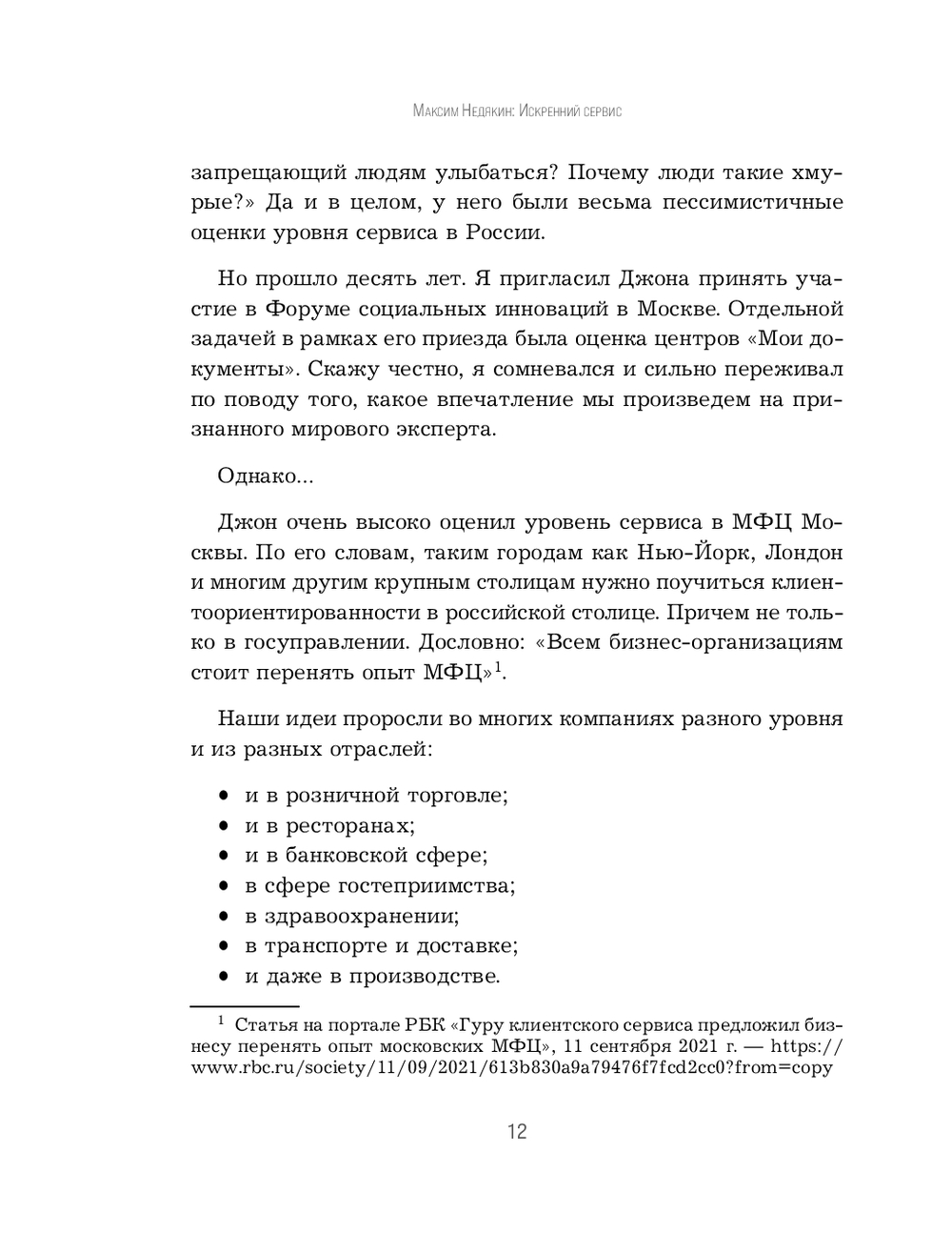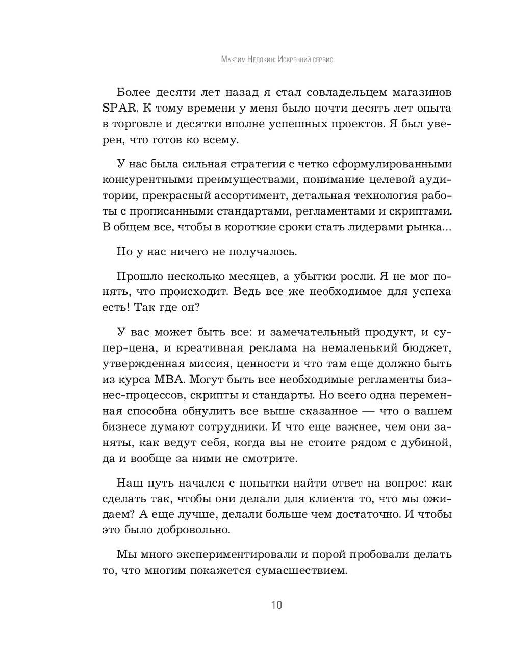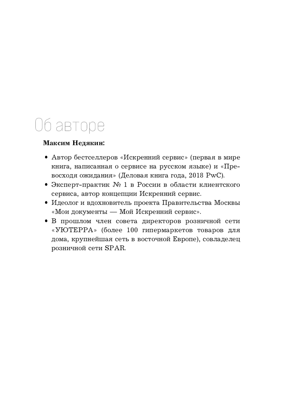 Довольный клиент обязательно вернется снова. Чтобы клиент был доволен, необходимо создать высокий уровень сервиса. Но как добиться от сотрудников настоящего, искреннего отношения к клиенту? Максим Недякин – консультант по вопросам сервиса и развития компаний, имеет огромный практический опыт. В книге он подробно разбирает примеры управления российских компаний и рассказывает, как создать по-настоящему клиентоориентированный сервис без использования жестких регламентов и наказаний.