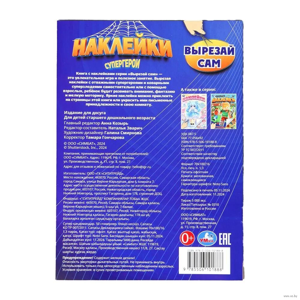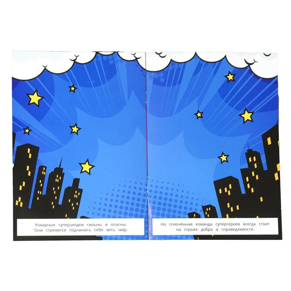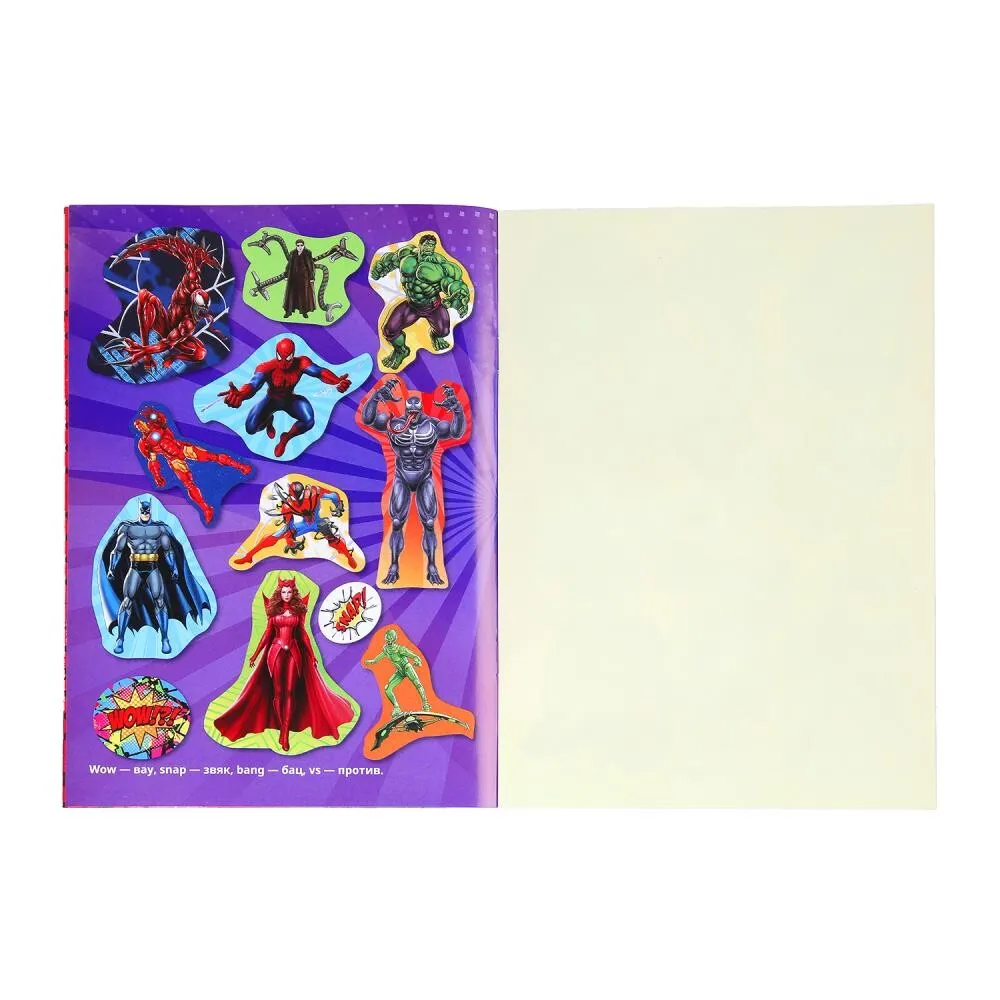 Книга с наклейками – это увлекательная игра и полезное занятие. Вырезая наклейки с отважными супергероями самостоятельно или с помощью взрослых, ребенок будет развивать внимание, фантазию и мелкую моторику. Яркие наклейки можно приклеить на страницы этой книги или украсить ими письменные принадлежности и свою комнату.