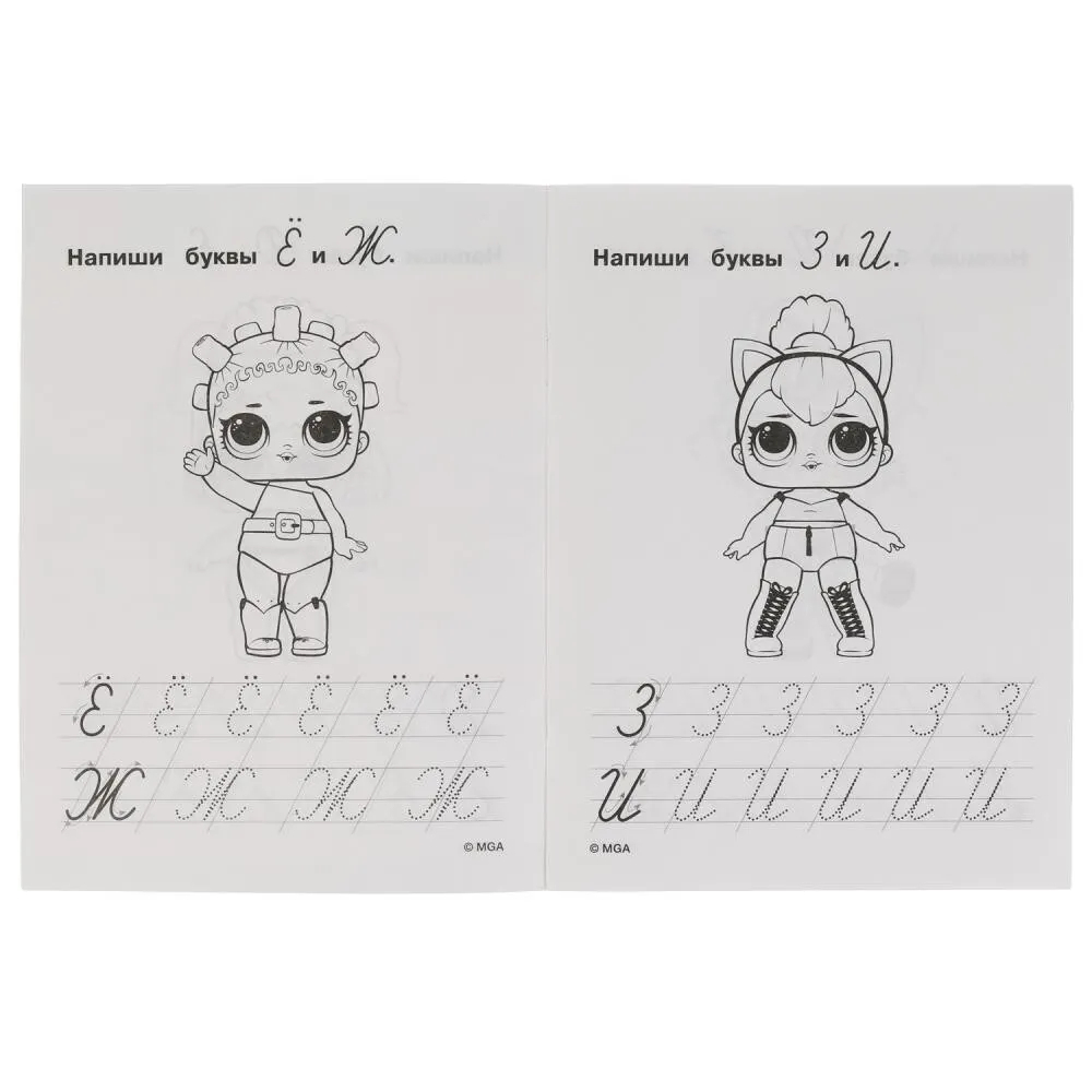 Ребенок будет рад повстречаться на страницах этой занимательной книжки с модными и стильными малышками ЛОЛ. В такой компании девочка с удовольствием будет тренироваться в написании курсивных букв, повторять алфавит, а также раскрашивать красивые картинки с четким контуром. Для достижения эффективных результатов в чистописании достаточно заниматься с детьми по 15 минут в день – главное, поддерживать их интерес и хвалить за успехи.