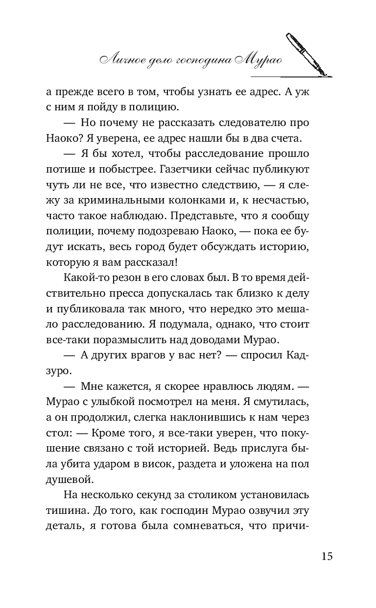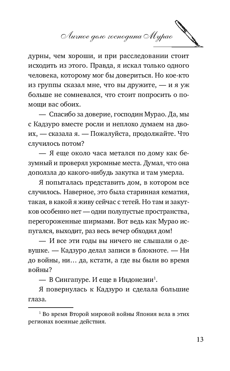 Арисима Эмилия, девушка с японскими, русскими и немецкими корнями, ищет свое место в обществе, где чужакам не очень-то доверяют. Работа редактором сводит ее с известным писателем Мурао Кэнъитиро: он поручает ей разыскать женщину, связанную с его собственным давним преступлением. Простая просьба оборачивается настоящим расследованием.