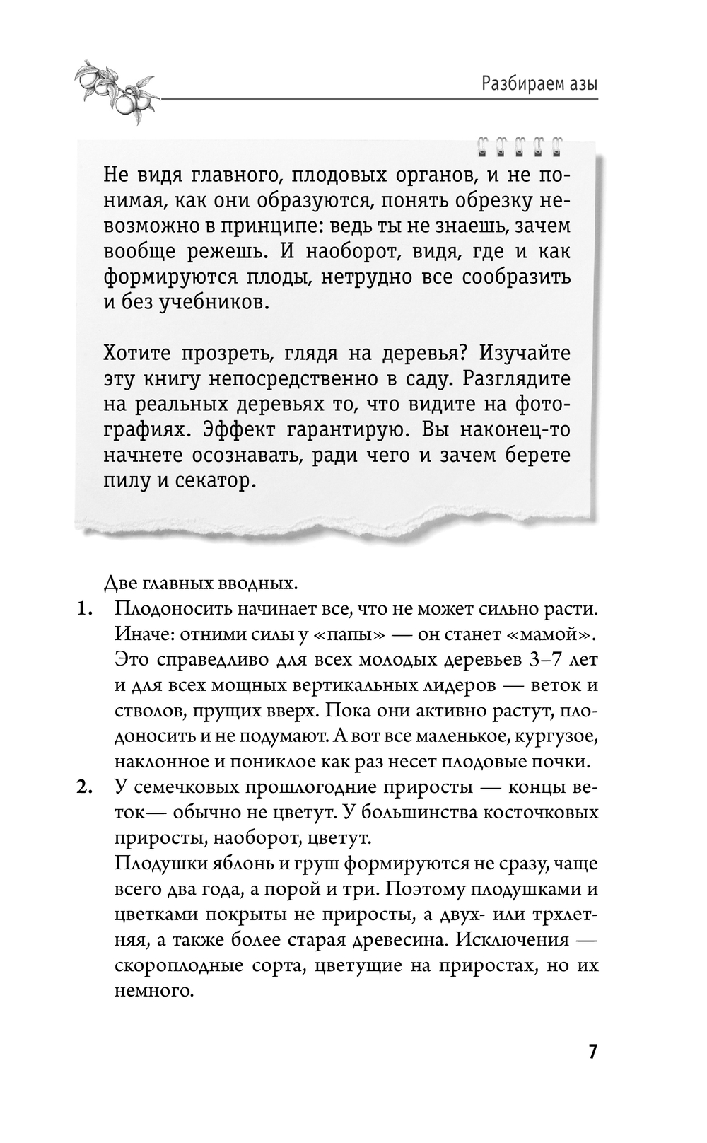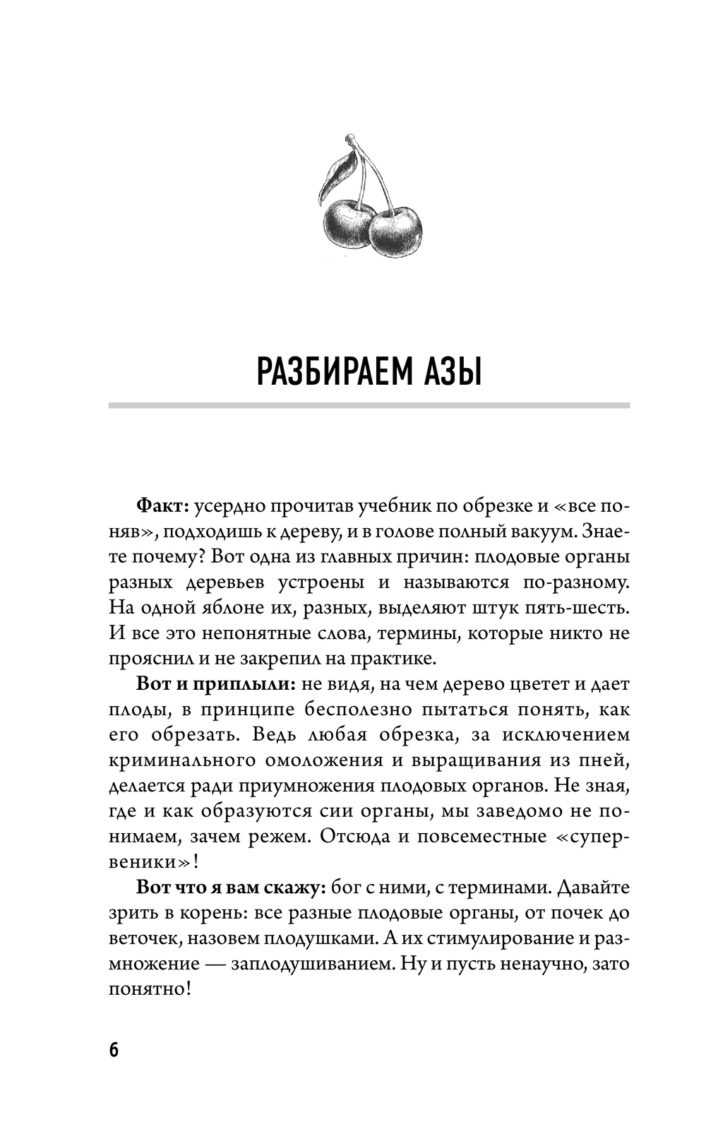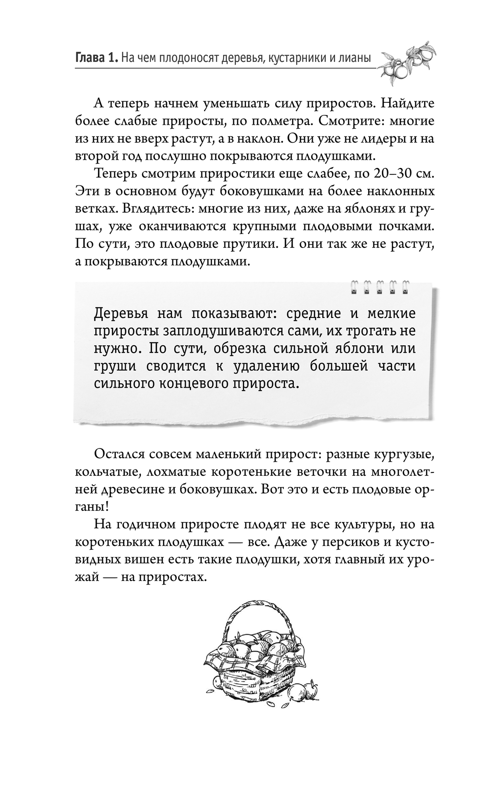 Автор на конкретных примерах разбирает особенности обрезки более 25 видов кустарников и деревьев: яблоня, груша, смородина, малина и многие другие. В книге есть не только практичные советы, но и наглядные схемы, которые помогут разобраться в обрезке, даже если вы никогда не держали секатор в руках.