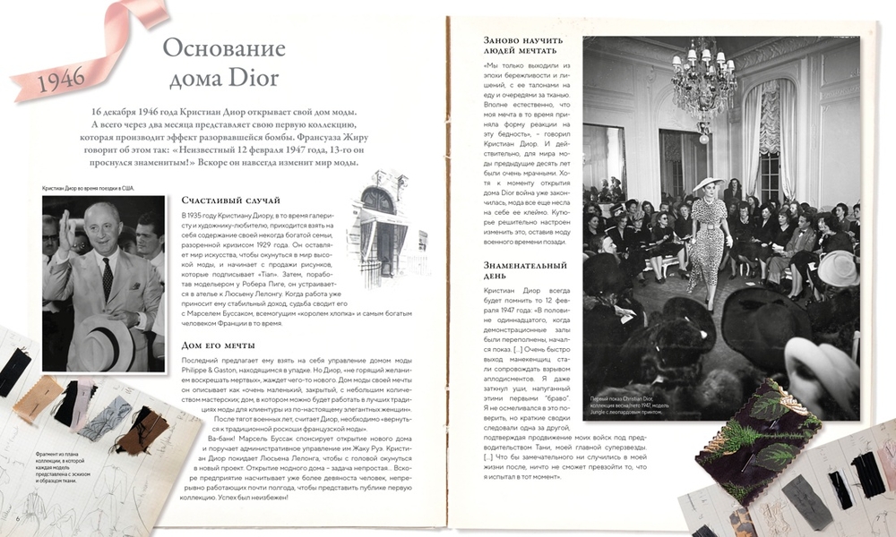 Погрузитесь в историю этой жемчужины французской высокой моды с более чем 300 иллюстрациями и уникальными факсимиле, среди которых: эскизы самого Кристиана Диора, эскизы флаконов легендарных ароматов, каталоги коллекций, приглашения на показы...