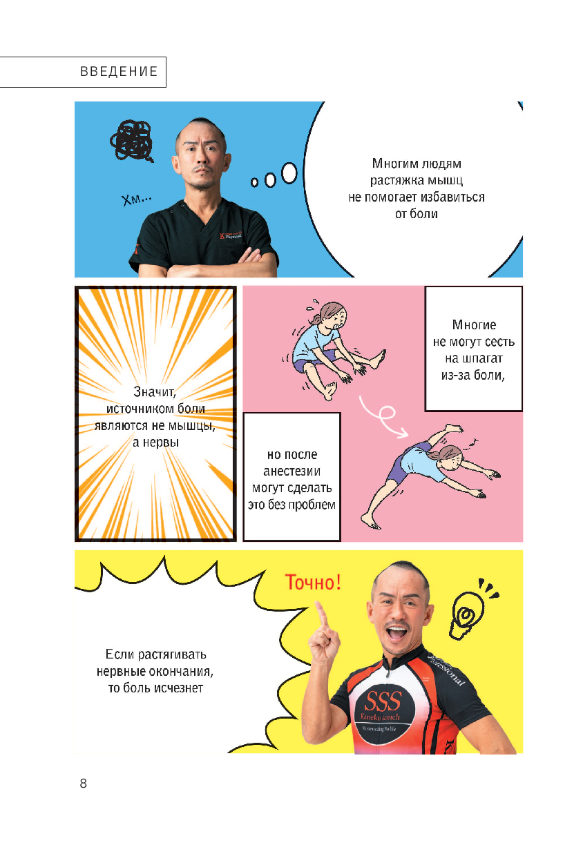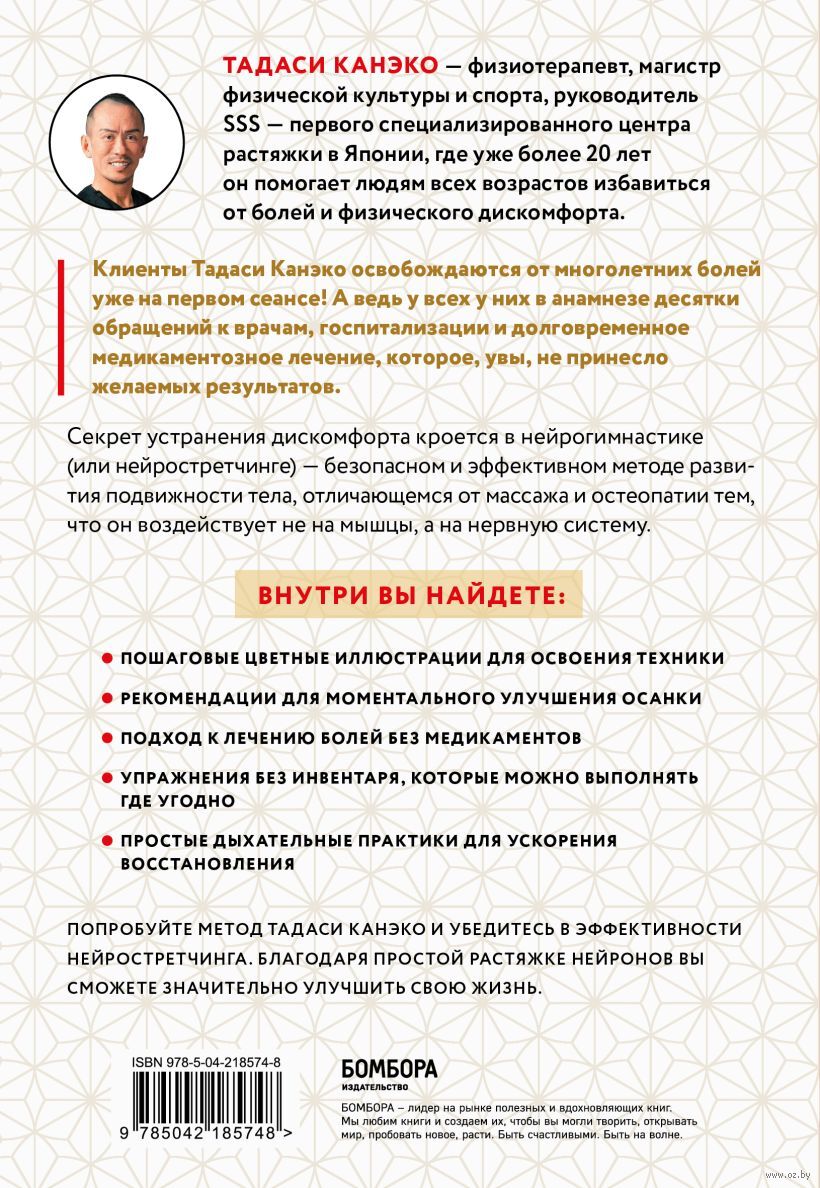 Известный японский физиотерапевт Тадаси Канэко представляет новаторскую методику "растяжки нейронов", помогающую избавиться от хронических болей без медикаментов. Автор, руководитель первого в Японии специализированного центра растяжки, объясняет, почему традиционные методы лечения часто неэффективны против болей, вызванных нарушениями функционирования нервной системы. В книге подробно описана уникальная техника нейростретчинга, отличающаяся от обычной растяжки или массажа тем, что воздействует непосредственно на нервные пути. Читатели найдут четкие пошаговые иллюстрации упражнений для разных зон боли – от шеи до стоп, а также дыхательные практики для закрепления результата.