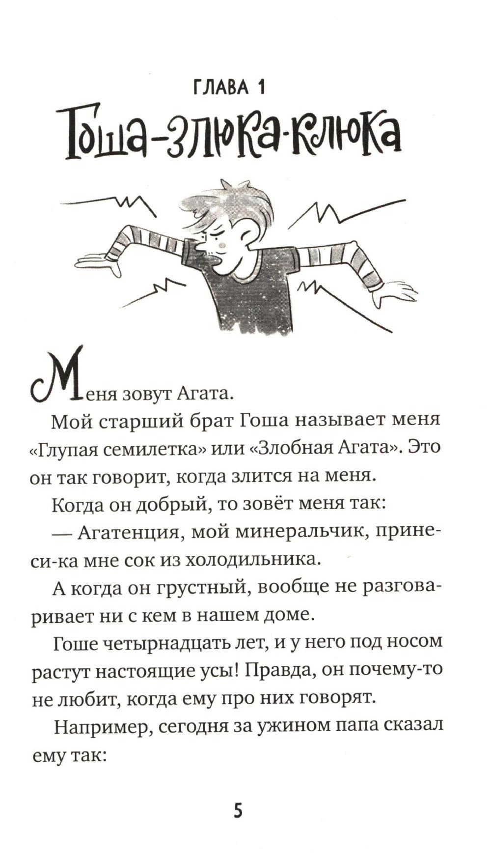 "Я – Агата, и я уже учусь в школе. Но для старшего брата Гоши, которому четырнадцать, я – маленькая и глупая. Иногда, когда у Гоши хорошее настроение, он называет меня Агатенция.