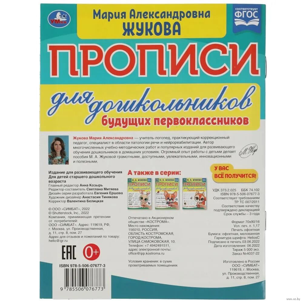 Данные прописи разработаны Марией Александровной Жуковой – педагогом-логопедом с многолетним опытом работы в дошкольных учреждениях. Обучению письму – важный этап в развитии ребенка. Одним из направлений в работе по подготовке к школьному обучению является развитие графических навыков. Во время выполнения заданий развивается мелкая моторика рук, которая влияет на формирование коры головного мозга ребенка.