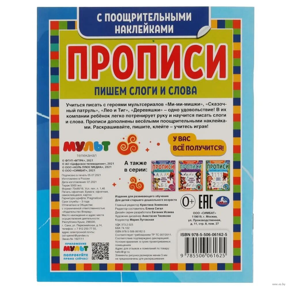 Данная книга с прописями и героями любимых мультсериалов облегчит процесс обучения ребенка, поможет ему потренировать руку в написании слогов и слов курсивными буквами. А поддерживать интерес к учебе и хвалить за успехи помогут поощрительные наклейки.