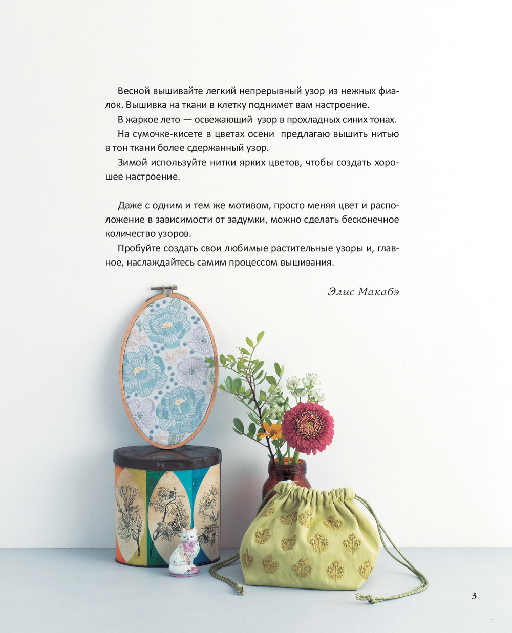 Ими делится Элис Макабэ – японская художница и вышивальщица, известная во всем мире. Именно она автор бестселлера "Вышивка Элис Макабэ. Сказки японского леса"! Каждый день, беря в руки нитки и иголку, она стремится запечатлеть каждое мгновение, каждое едва заметное изменение, связанное со сменой времен года.