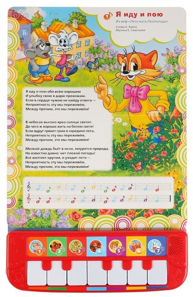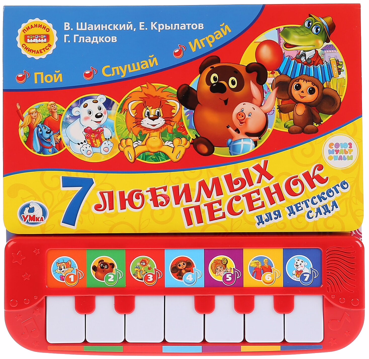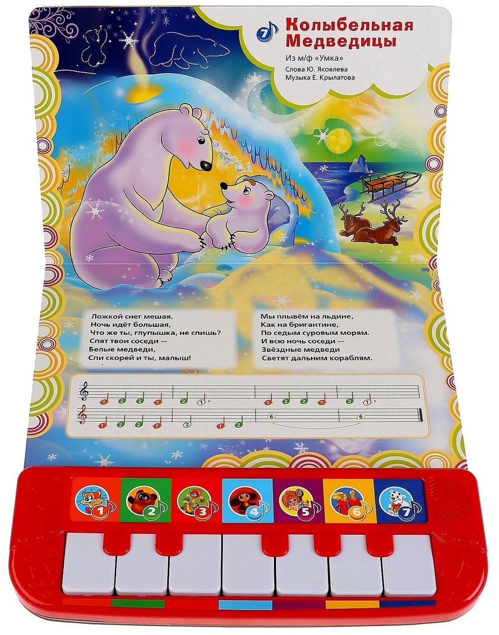 Книжка-пианино "7 любимых песенок" от издательства "Умка" понравится вашему ребёнку и подарит ему массу приятных минут! Яркие красочные рисунки привлекут малыша, клавиши пианино, расположенные снизу, помогут почувствовать себя настоящим артистом! Нажимая на них можно услышать звуки музыкального инструмента и 7 песен из любимых детских мультфильмов. Выбрать композицию поможет иллюстрации персонажей над клавишами. Всего в книге 12 страниц с разными сюжетами.