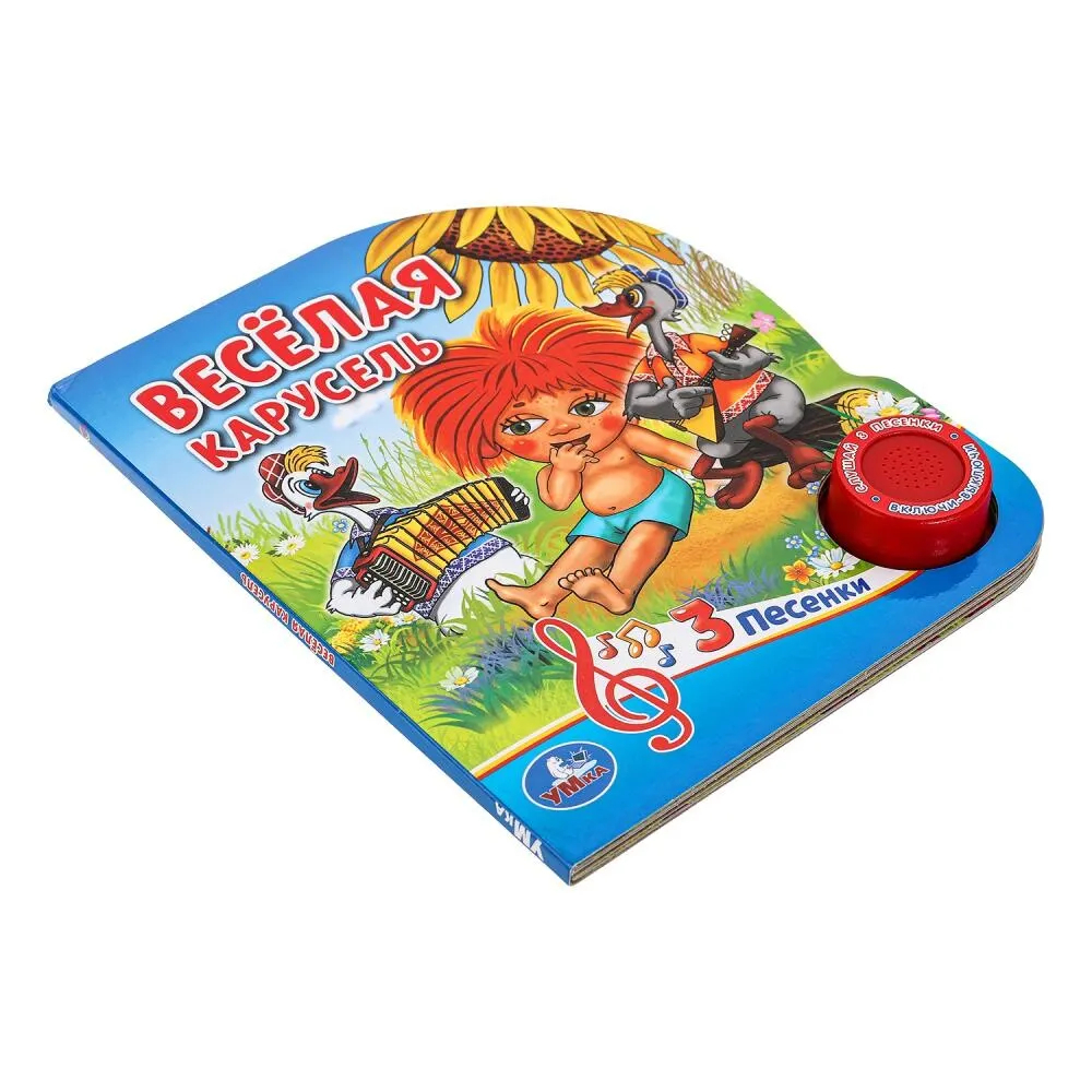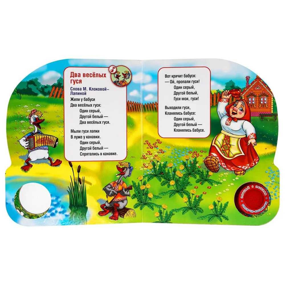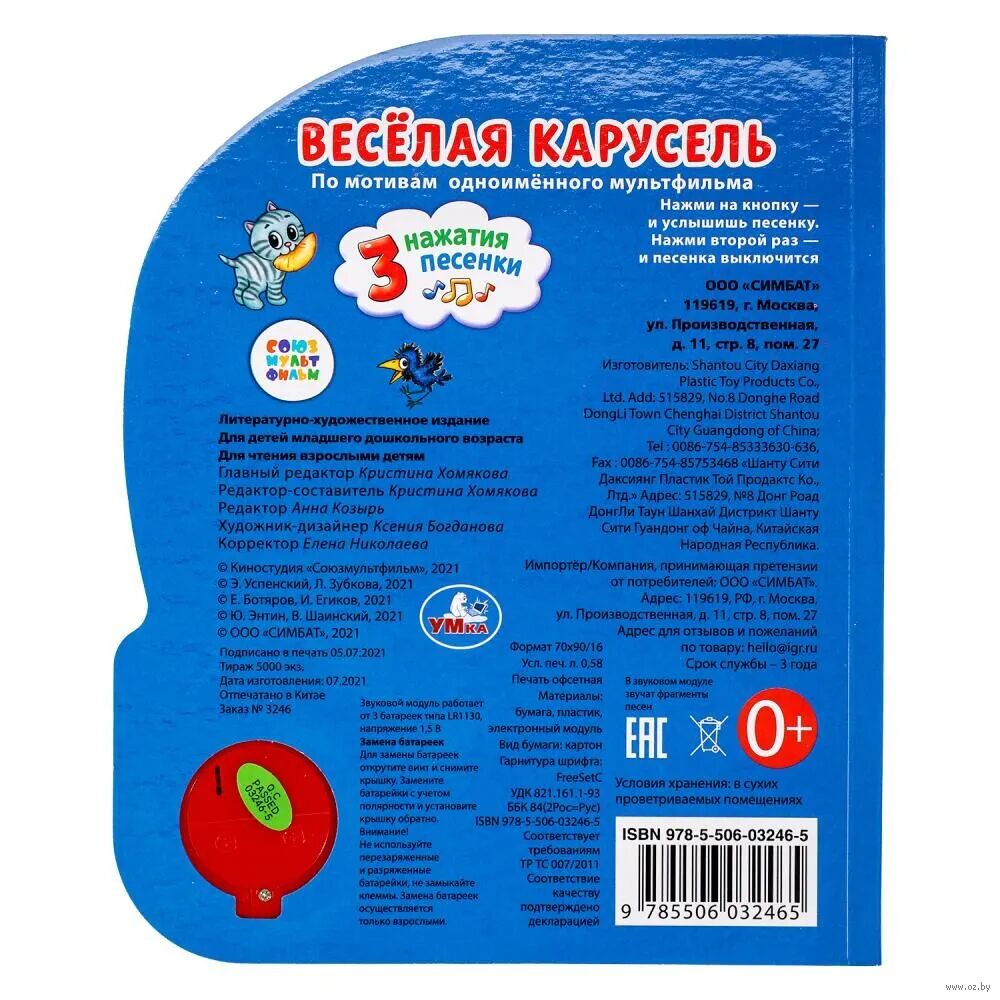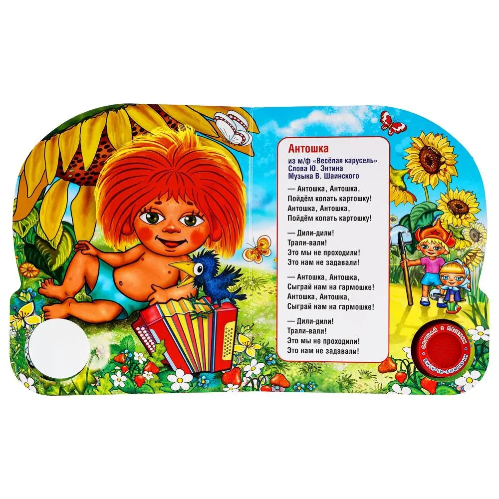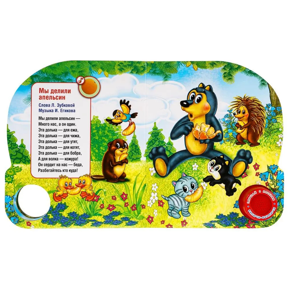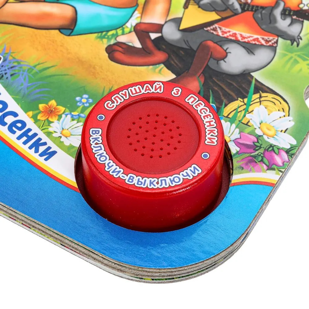 Ребенок с удовольствием будет листать плотные страницы, рассматривать красочные картинки с изображением героев любимых м/ф и, конечно, нажимать на кнопку и слушать веселые песенки. Малыш легко освоит включение звука: по нажатию на кнопку песенка включится, при втором нажатии выключится, при третьем – заиграет следующая композиция. Благодаря компактному размеру книгу удобно взять с собой в дорогу.