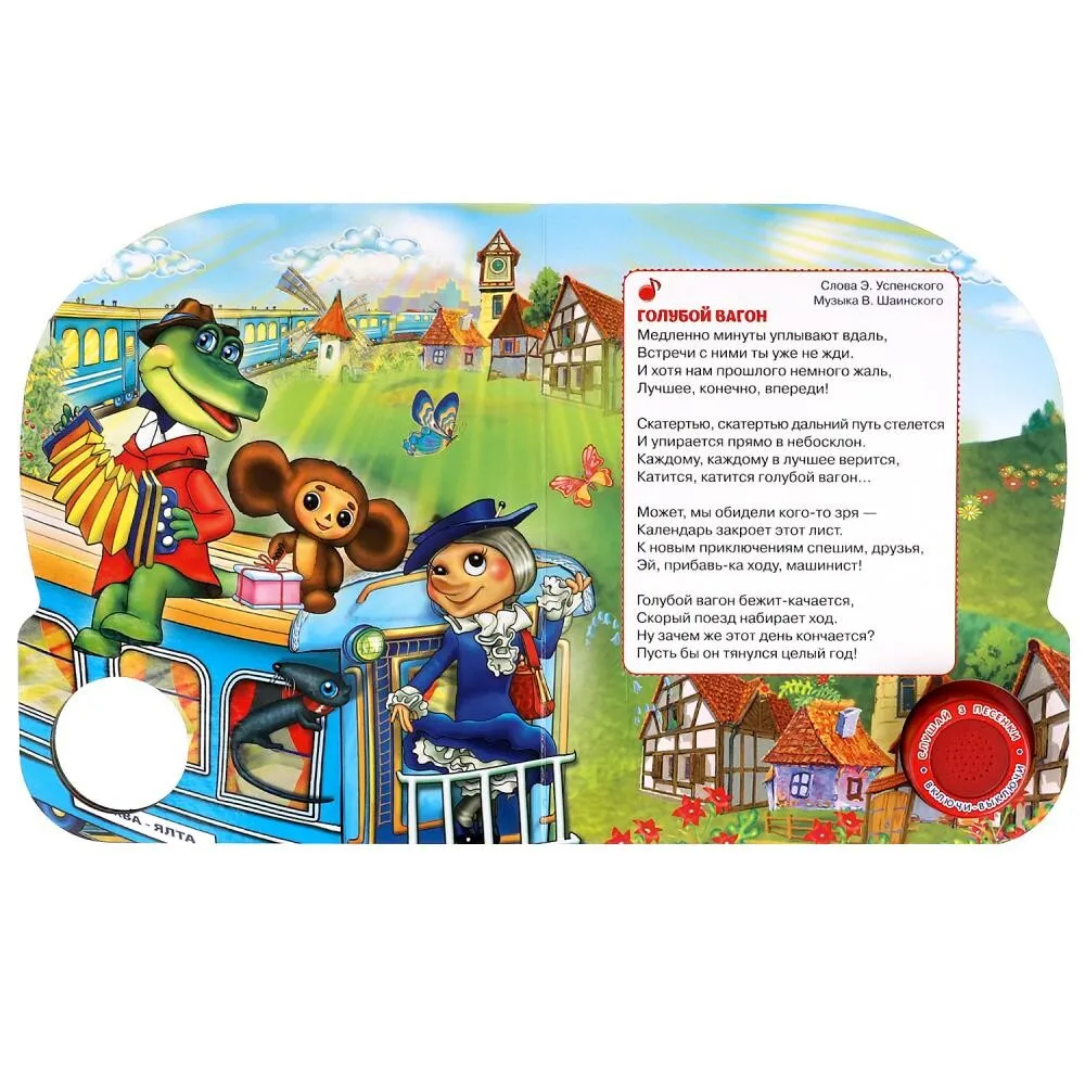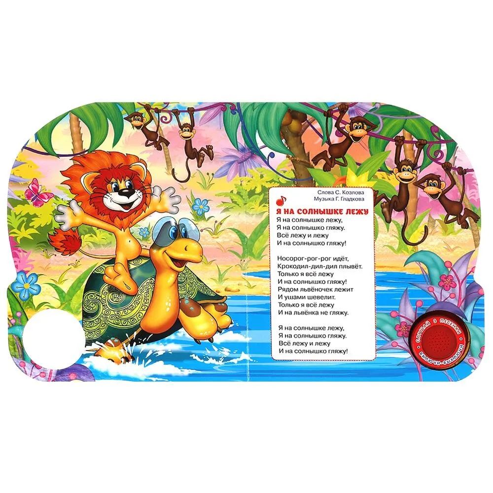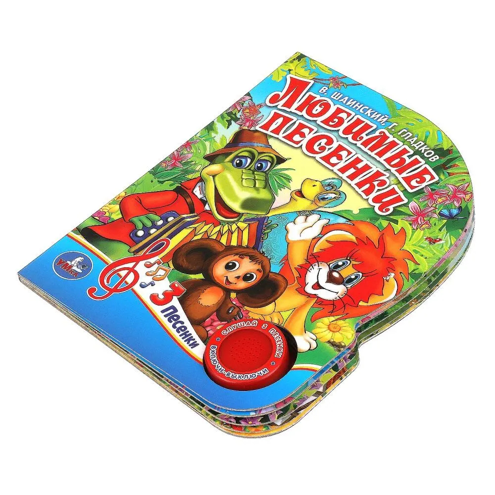 Малыш с удовольствием будет листать плотные страницы, рассматривать красочные картинки, вместе с родителями читать и слушать песенки из любимых мультфильмов. Ребенок легко освоит включение звука: по нажатию на кнопку песенка включится, при втором нажатии выключится, при третьем – заиграет следующая композиция и т.д. Благодаря компактному размеру книгу удобно взять с собой в дорогу.