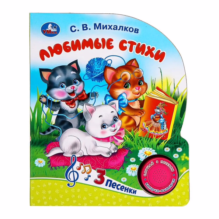 Малыш с удовольствием будет листать плотные страницы, рассматривать красочные картинки, вместе с родителями читать стихотворения и слушать песни на стихи Сергея Михалкова. Ребенок легко освоит включение звука: по нажатию на кнопку песенка включится, при втором нажатии выключится, при третьем – заиграет следующая композиция и т.д. Благодаря компактному размеру книгу удобно взять с собой в дорогу.