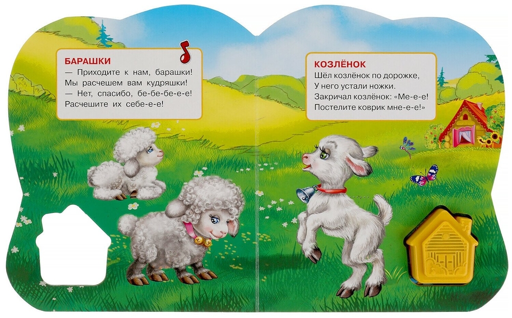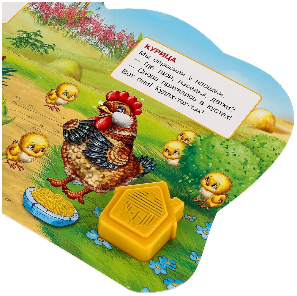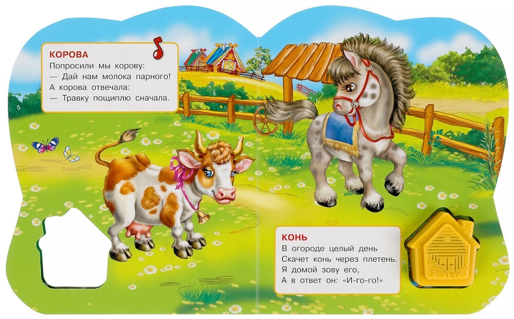 Ребёнок с удовольствием будет листать плотные страницы, рассматривать красочные картинки, читать вместе с родителями интересные стихи о домашних животных, а также нажимать на кнопку и слушать весёлые песенки. Малыш легко освоит включение звука: по нажатию на кнопку включится первая песенка, при втором нажатии выключится, в 3-ий раз – заиграет следующая и т. д. Благодаря компактному формату книгу удобно взять с собой в дорогу.