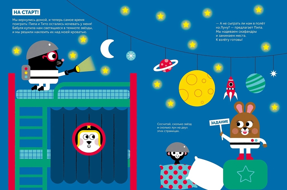 Привет, я Тибо! Приготовься к захватывающему путешествию прямо в бескрайнее в небо! Следуй за мной в облака, к Солнцу, Луне и забавному Космоглоту, который пугает всю Вселенную. Мы запустим воздушного змея, проведём день в планетарии, глядя на звёзды, сделаем космическую гирлянду и маленькие бумажные ракеты. А ещё проведём тренировку перед полётом в космос! Скорее надевай шлем ― наше путешествие начинается!