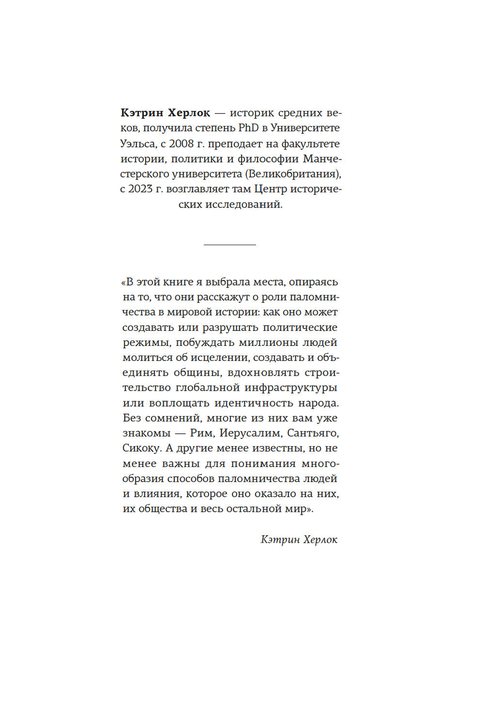 Британский историк Кэтрин Херлок считает, что паломничество – это не просто благочестивое путешествие. Древние греки консультировались у оракулов по вопросам государственного управления, в Китае ожидали одобрения высших сил природы при смене правящей династии, средневековые короли молили о победе в войнах. Святыни – это "места силы" стран и народов.