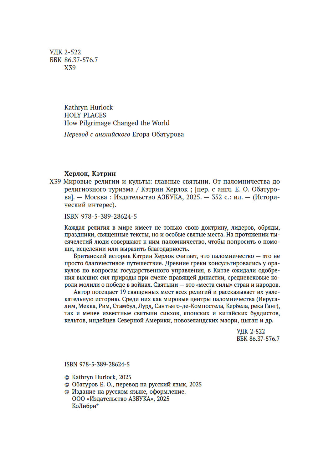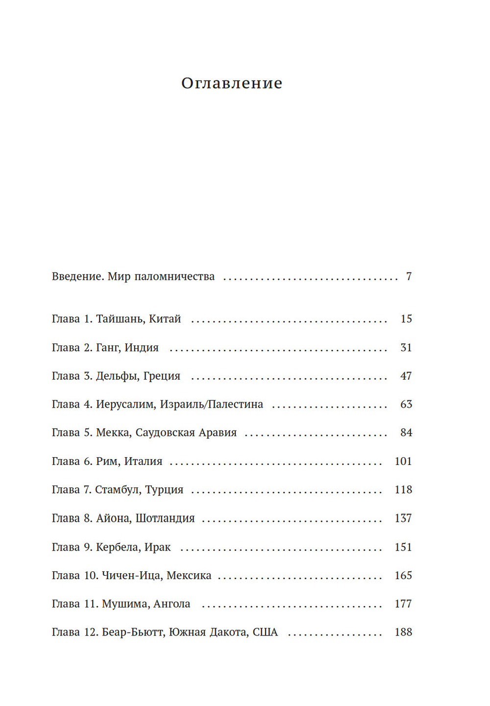 Автор посещает 19 священных мест всех религий и рассказывает их увлекательную историю. Среди них как мировые центры паломничества (Иерусалим, Мекка, Рим, Стамбул, Лурд, Сантьяго-де-Компостела, Кербела, река Ганг), так и менее известные святыни сикхов, японских и китайских буддистов, кельтов, индейцев Северной Америки, новозеландских маори, цыган и др.