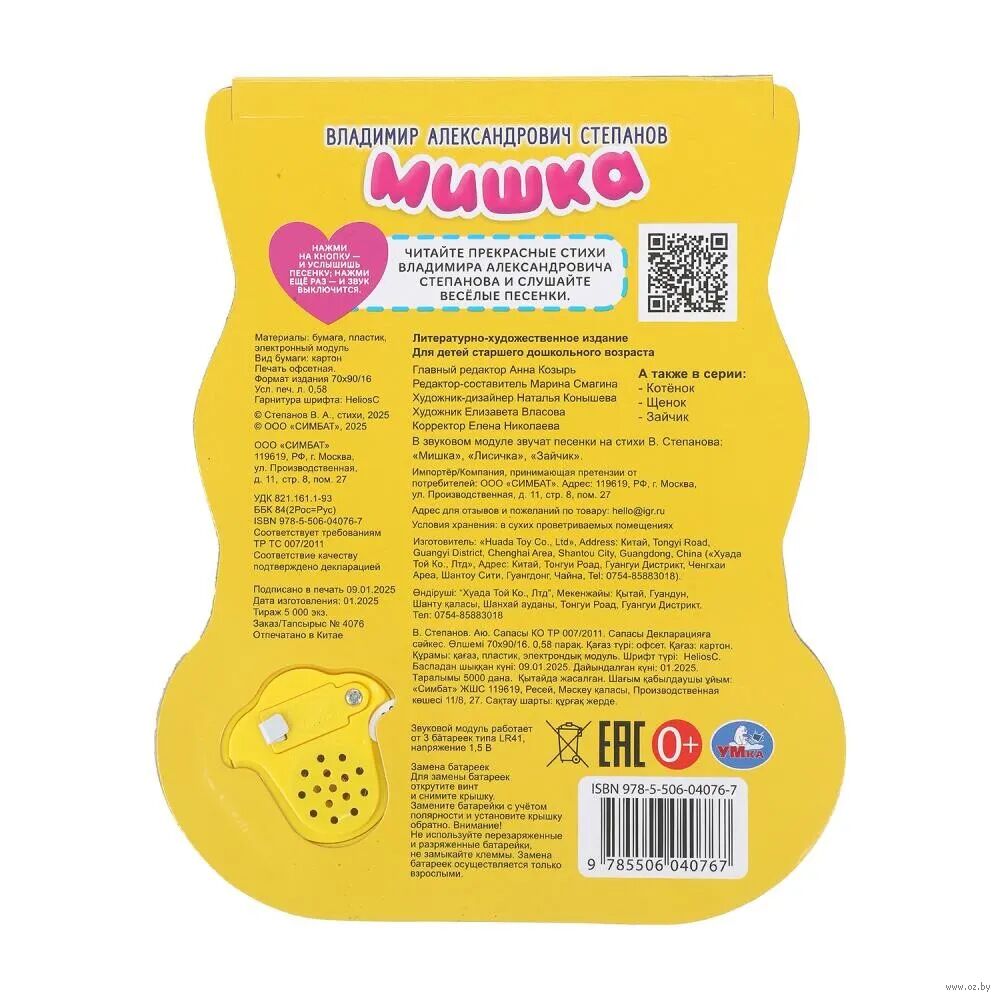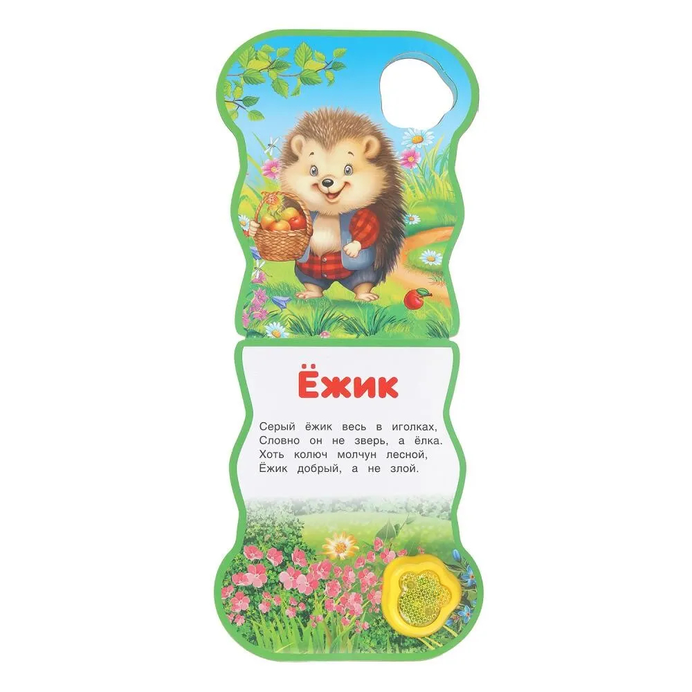 Ребенок с удовольствием будет листать плотные страницы, рассматривать яркие картинки и вместе с родителями читать интересные стихи. А если нажать на кнопку-лапку, она будет воспроизводить мелодичные песенки и красиво светится при этом. Малыш легко освоит включение звука: по нажатию на кнопку песенка включится, при втором нажатии выключится. Благодаря компактному размеру книгу удобно брать с собой в дорогу.
