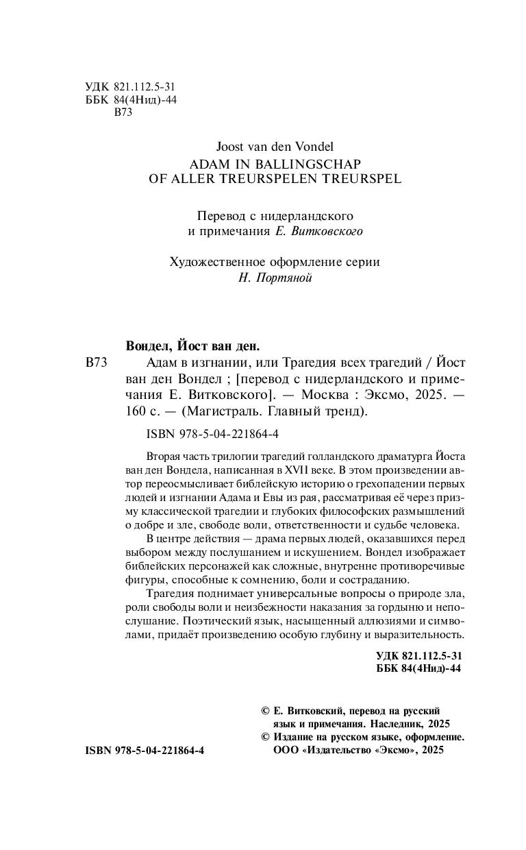 | Название в оригинале | Lucifer. Adam In Ballingschap Of Aller Treurspelen Treurspel. Noah Of Ondergang Der Eerste Wereld |