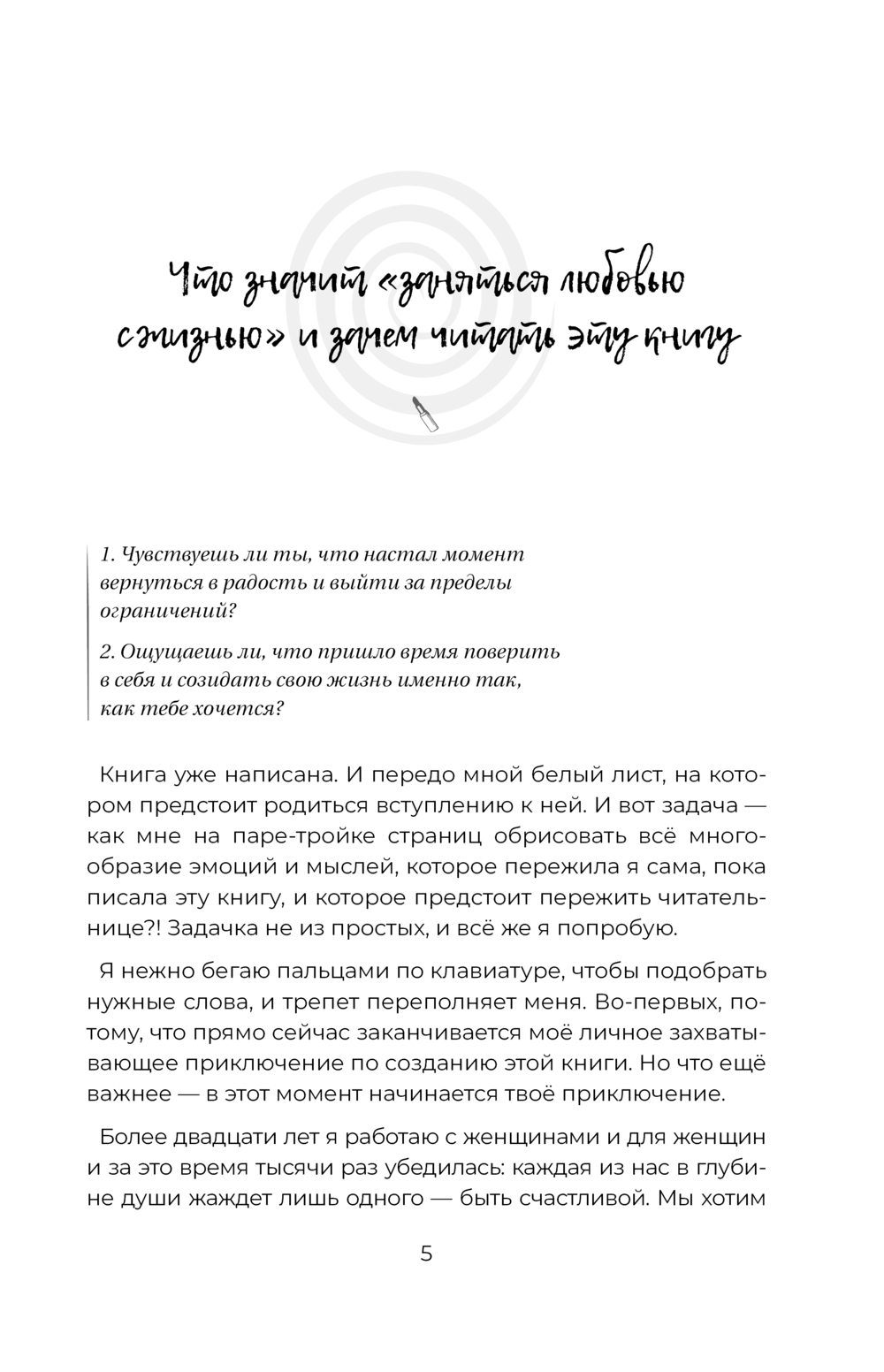 Эта книга – нежное, честное и вдохновляющее приглашение вернуть себе радость, почувствовать вкус каждого дня и, наконец, заняться любовью… с самой жизнью.