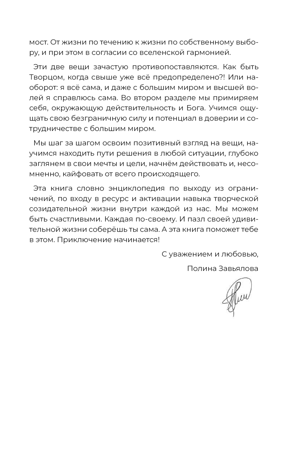 Полина Завьялова, популярный коуч, блогер и автор женских практик, делится своим многолетним опытом и предлагает пошаговый путь к внутреннему ресурсу, лёгкости и удовольствию от жизни. Полина исследует глубинные причины усталости, напряжения, отсутствия энергии – и предлагает мягкие, действенные инструменты для возвращения к себе.
