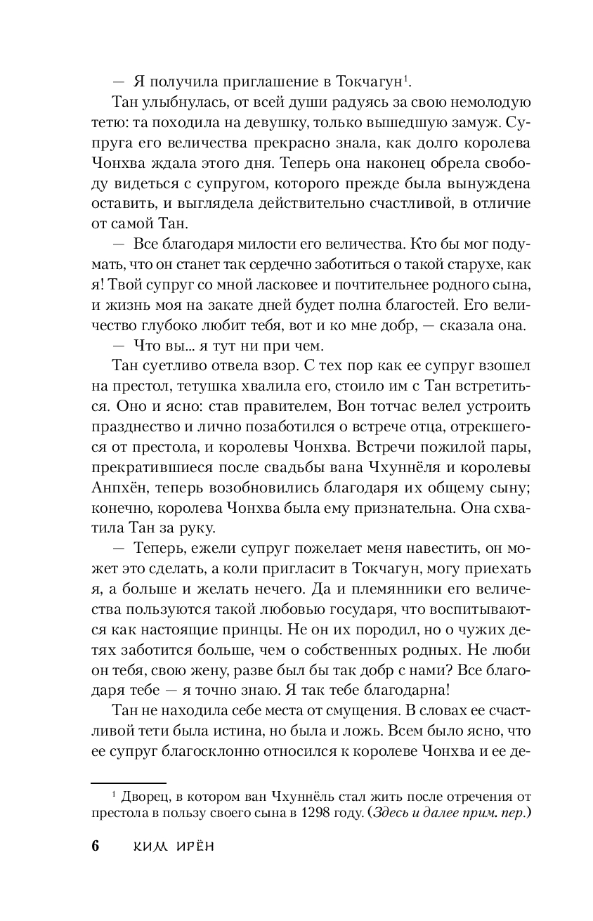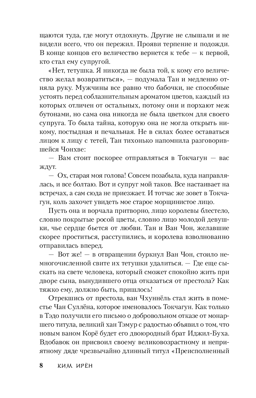На самом же деле, запертая Воном во дворце, Сан была вынуждена дни напролет проводить в тайной комнате. А что еще ему оставалось делать? Сан стала преступницей, ее обвиняют в измене королевской семье. Измене Корё. Ради ее спасения Вону лично пришлось вмешаться и теперь он, подвергая себя опасности, скрывает изменницу.