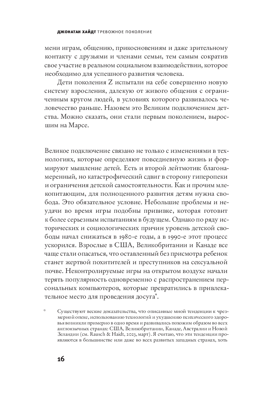 Психическое здоровье подростков долгое время оставалось стабильным – и резко ухудшилось в начале 2010-х годов. Но откуда взялась волна тревожности, депрессии и суицидальных мыслей, которая накрыла детей? Психолог Джонатан Хайдт считает: всему виной – тотальный переход человечества на смартфоны и последовавшие манипуляции социальных сетей. Он не только объясняет, как цифровые технологии взломали детскую психику, но и рассказывает, каким образом обратить волну вспять.