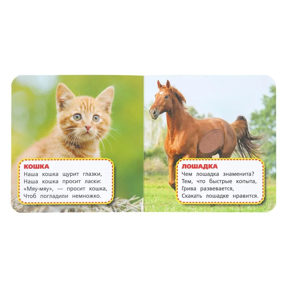Книжка красивыми иллюстрациями и интересными стихами познакомит малыша с разными дикими животными. Для привлечения большего внимания ребенка к книге и развития его сенсорики на обложке и разворотах имеются элементы из приятных на ощупь материалов. Благодаря компактному размеру издание удобно брать повсюду с собой.