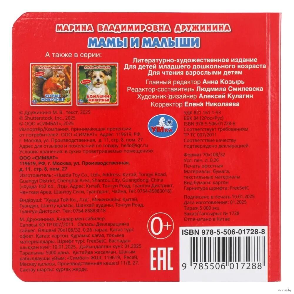 Книжка красивыми иллюстрациями и интересными стихами познакомит малыша с разными животными – мамами и их детенышами. Для привлечения большего внимания ребенка к книге и развития его сенсорики на обложке и разворотах имеются элементы из приятных на ощупь мягких материалов. Благодаря компактному размеру издание удобно брать повсюду с собой.