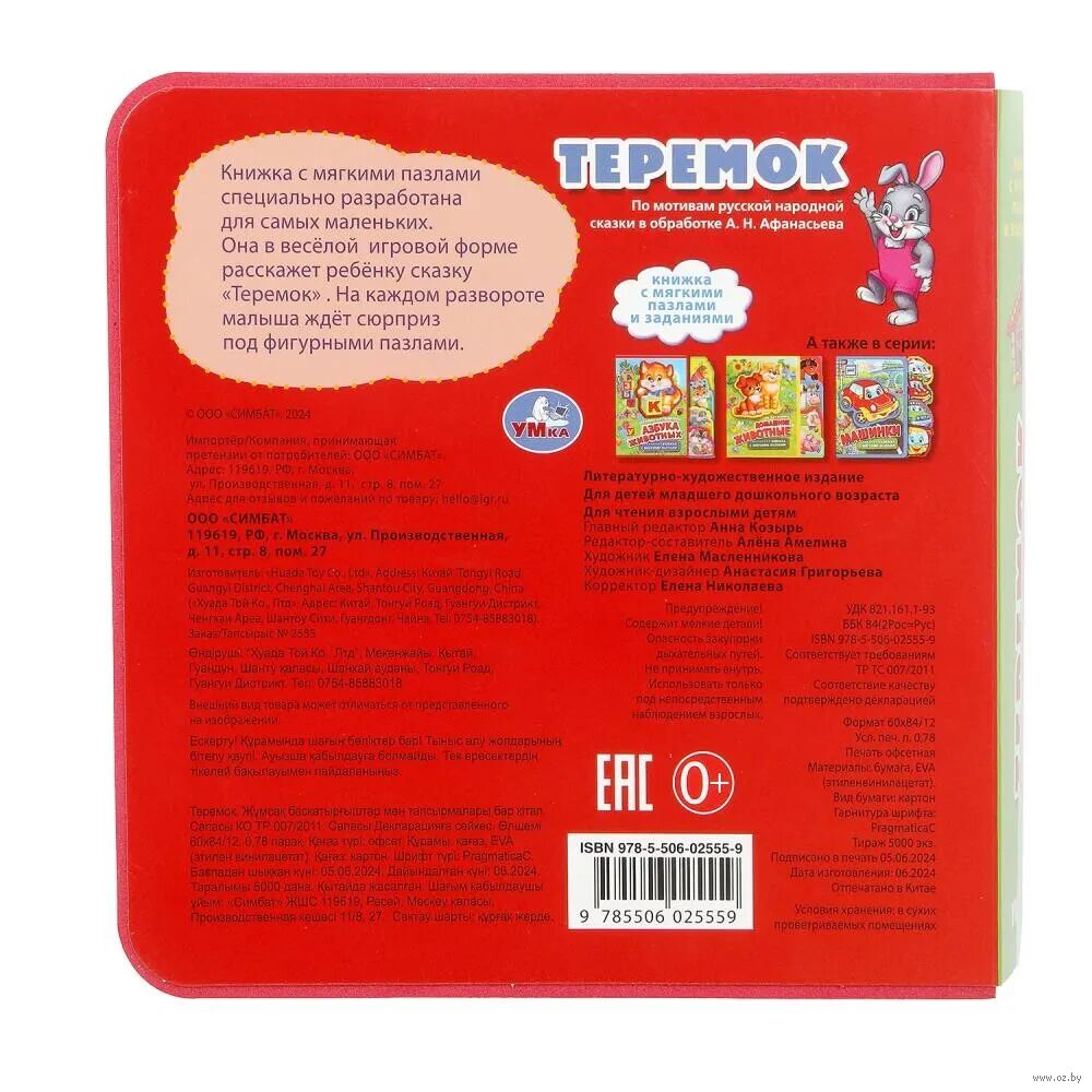 Оригинально оформленная книжка с фигурной вырубкой, яркими страницами и мягким обрамлением обязательно заинтересует маленького любознайку. Ребенок с удовольствием будет листать книгу с помощью специальных закладок и играть с 5 пазлами-вставками, извлекая их из страниц и помещая обратно. Благодаря компактному формату книжку удобно брать с собой в дорогу.