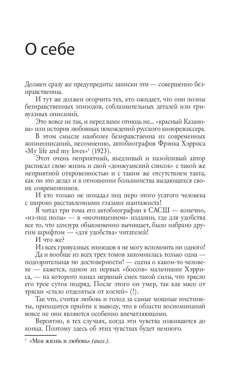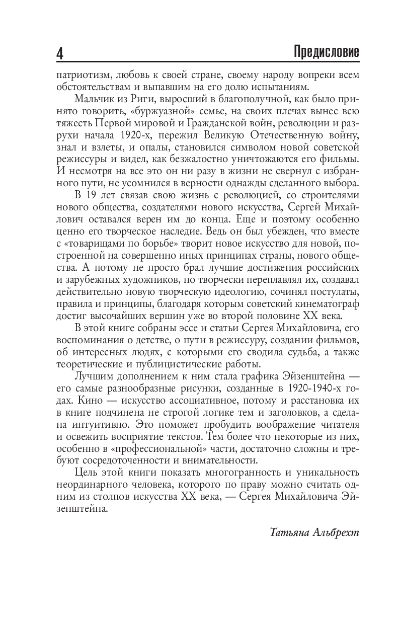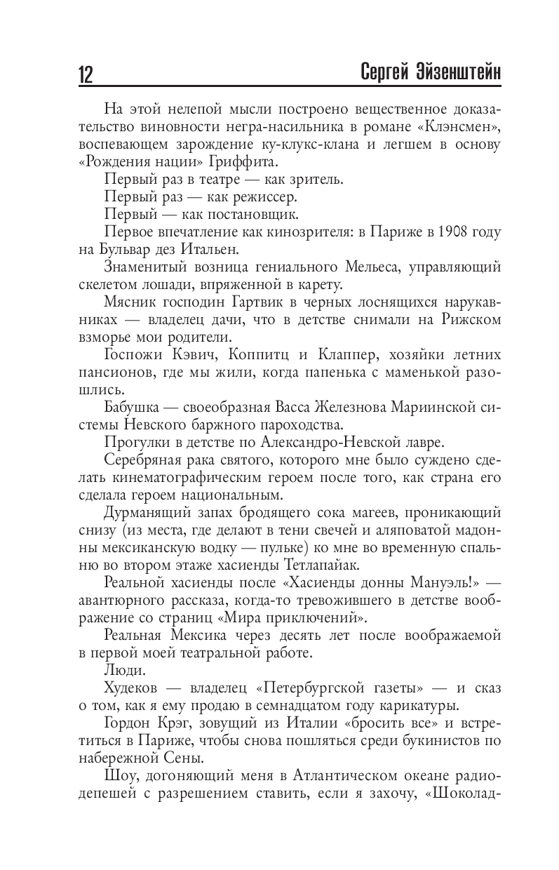 В этой книге собраны эссе и статьи Сергея Михайловича, его воспоминания о детстве, пути в режиссуру, работе над фильмами, об интересных людях, а также теоретические и публицистические работы. Тексты проиллюстрированы его рисунками, созданными в 1920-1940-х годах.