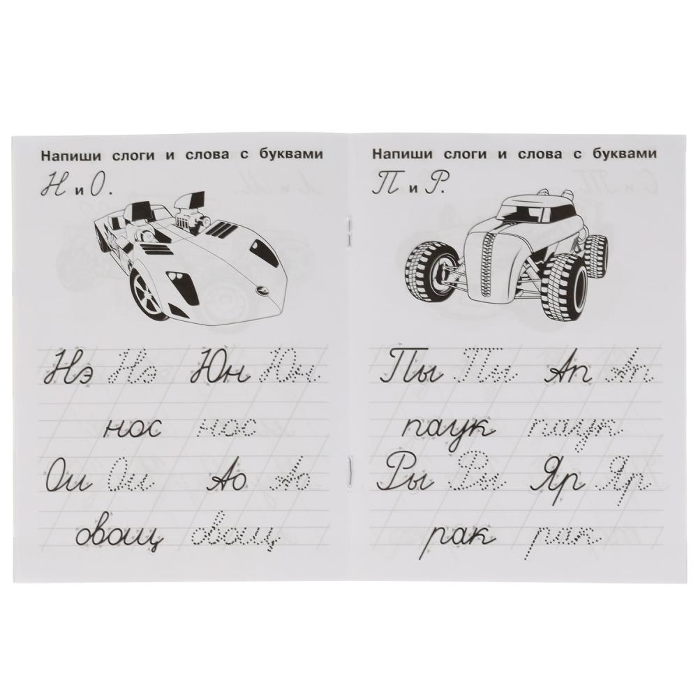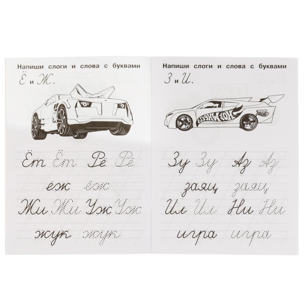 На страницах этой занимательной книги ребёнка ожидают разнообразные картинки с изображением крутых гоночных машинок. Он с удовольствием будет их раскрашивать, а также тренироваться в написании слогов и слов курсивными буквами.