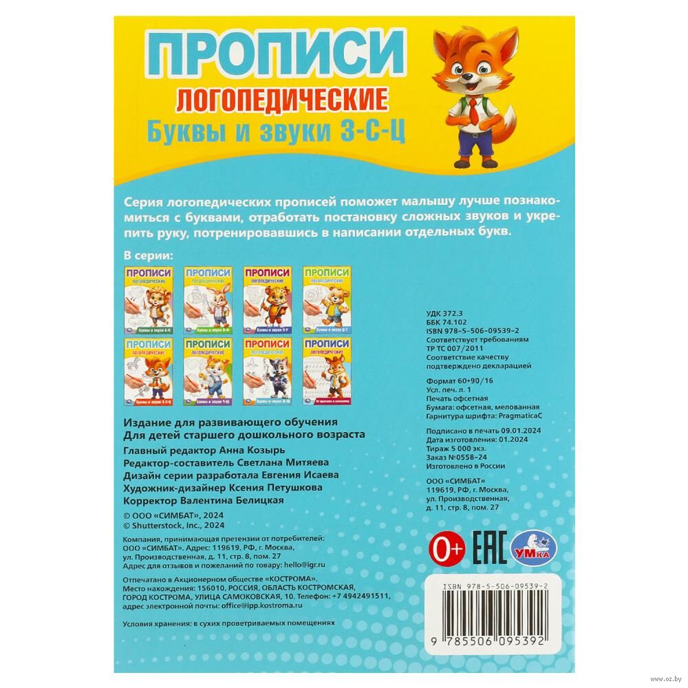 Буквы и звуки З-С-Ц. Прописи логопедические