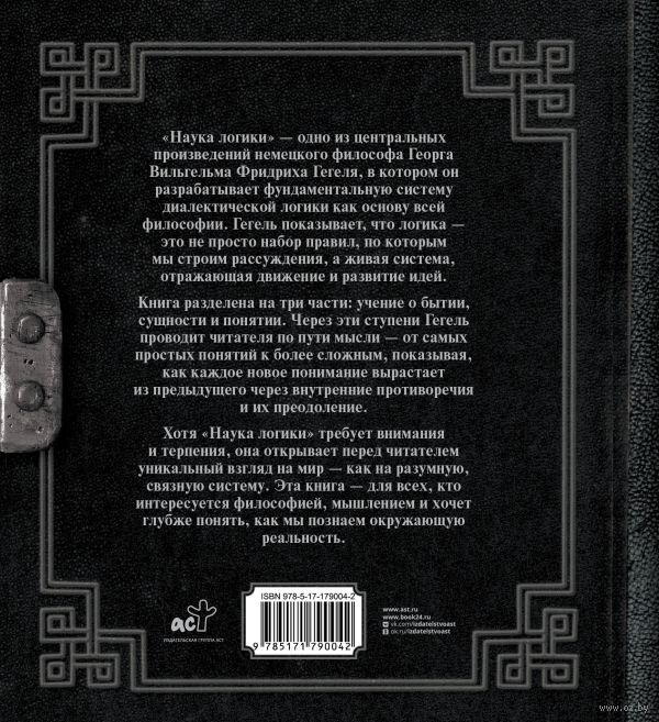 Хотя "Наука логики" требует внимания и терпения, она открывает перед читателем уникальный взгляд на мир – как на разумную, глубоко связную систему. Эта книга – для всех, кто интересуется философией, мышлением и хочет глубже понять, как мы познаем окружающую реальность.