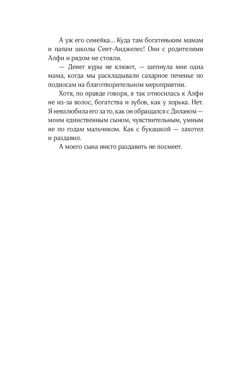 Но когда неожиданно исчезает Алфи Рисби, главный задира и хулиган в классе, именно Дилан становится основным подозреваемым. Чтобы защитить его, Флоренс решает сама отыскать пропавшего мальчика. Только так она сможет очистить имя Дилана – в противном случае она рискует потерять и его. Вот только Флоренс уверена: ее сыну точно есть что скрывать…