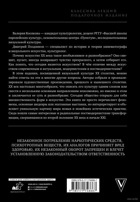 В этом издании, посвященном визуальной культуре XX столетия, можно найти ответы на эти и многие другие вопросы. Авторы собрали и проанализировали художественные произведения, прошлого и нынешнего столетия. XX век настолько многообразен, что описать его культуру одним словом или свести к нескольким основным направлениям невозможно, но именно в этом и заключается её суть и разнообразие. Сегодня общество открыло для себя множественность форм в искусстве.
