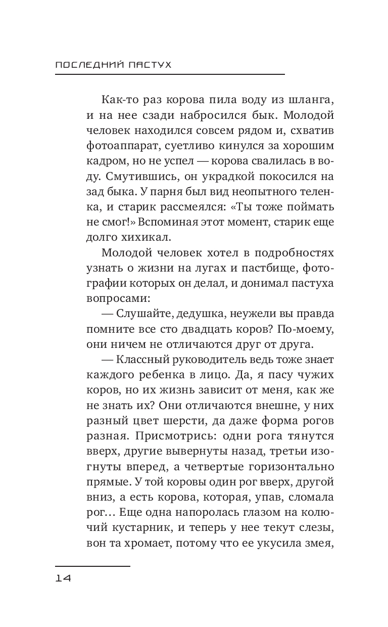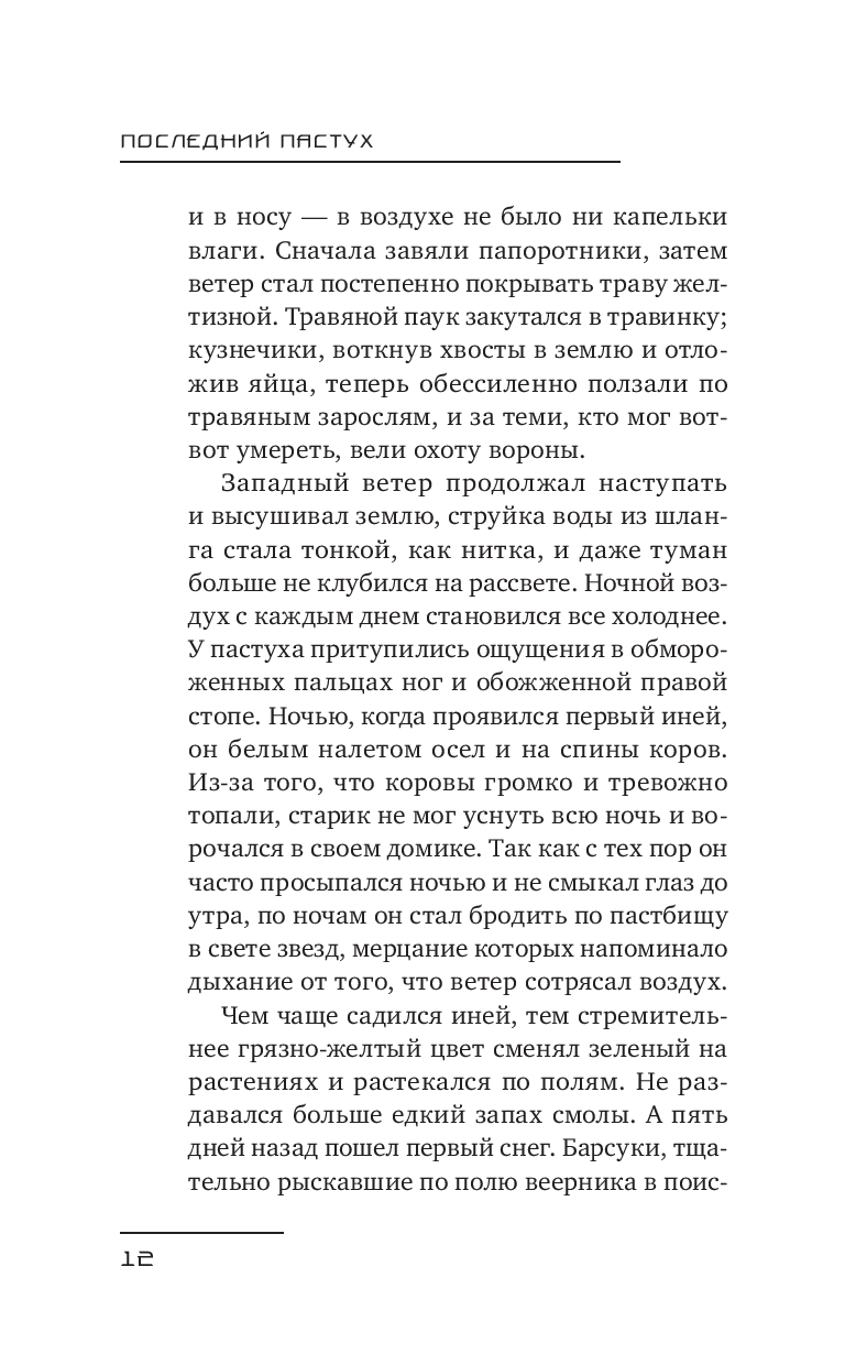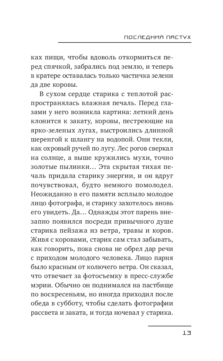 История последнего пастуха – это медленное прощание с тем, что невозможно удержать: с людьми, исчезнувшими деревнями и невозвратным временем. Здесь, среди теплого дыхания коровы и звука ветра в пустых полях, память становится единственным спутником, а каждая трещина в душе отзывается эхом давно ушедших лет.