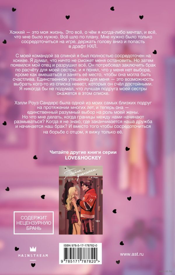 Хоккей – это моя жизнь. Это всё, о чём я когда-либо мечтал, и всё, что мне было нужно. Всё шло по плану. Мне нужно было только сосредоточиться на игре, держать голову вниз и попасть в драфт НХЛ. С моей командой за спиной я был полностью сосредоточен на хоккее. Я думал, что ничто не сможет меня остановить. Но затем появился мой отец и разрушил всё. Он потребовал заключить брак по расчёту для моей сестры, и я понял, что у меня нет выбора, кроме как вмешаться и занять её место, чтобы она могла быть счастлива.