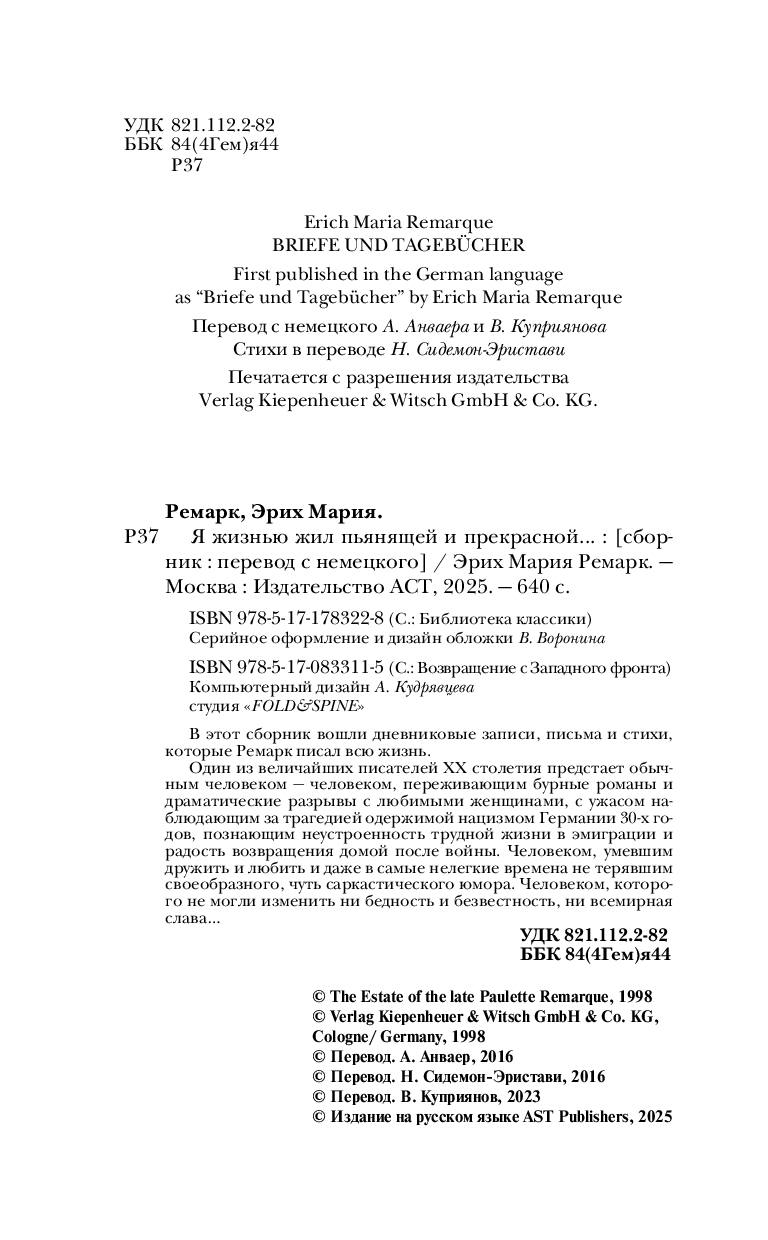 В этот сборник вошли дневниковые записи, письма и стихи, которые Ремарк писал всю жизнь.