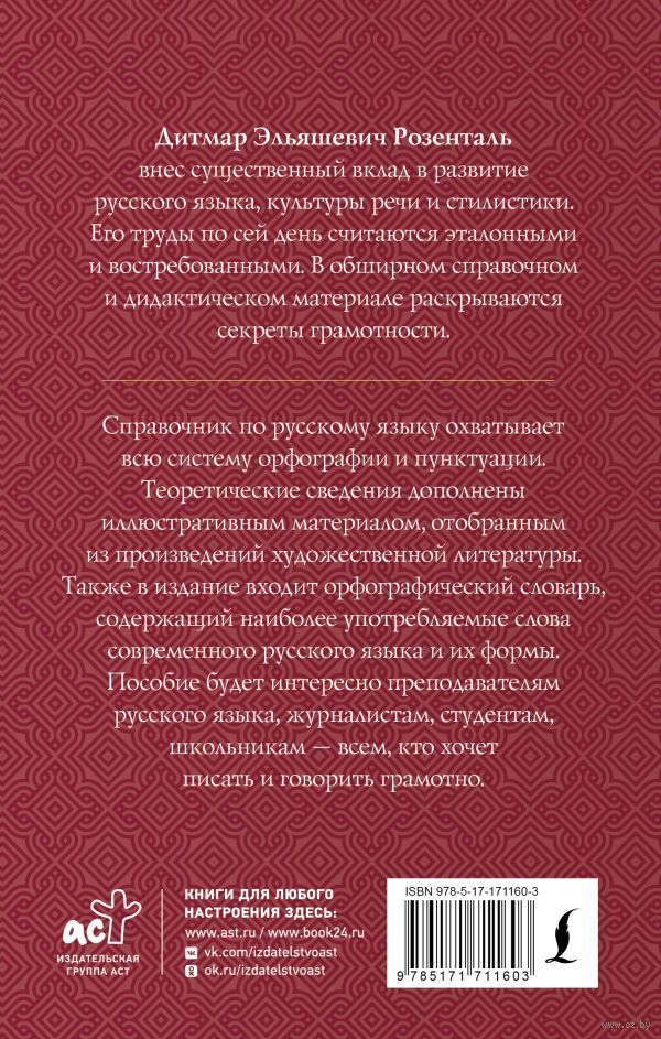 Розенталь Дитмар Эльяшевич – известный лингвист, профессор, автор многочисленных справочников по русскому языку, стилистике, правописанию, культуре речи. Его труды прошли проверку временем и стали эталонными. В обширном справочном и дидактическом материале раскрываются секреты грамотности.