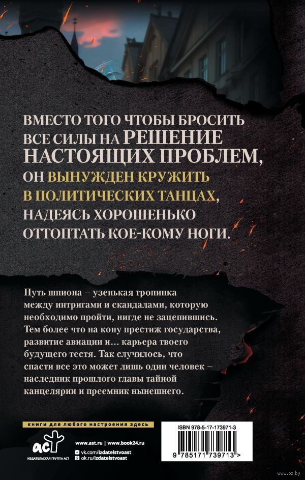Путь шпиона – узенькая тропинка между интригами и скандалами, которую необходимо пройти, нигде не зацепившись. Тем более что на кону престиж государства, будущее авиации и... карьера твоего будущего тестя.Так случилось, что спасти все это может лишь один человек – наследник прошлого главы тайной канцелярии и преемник нынешнего.