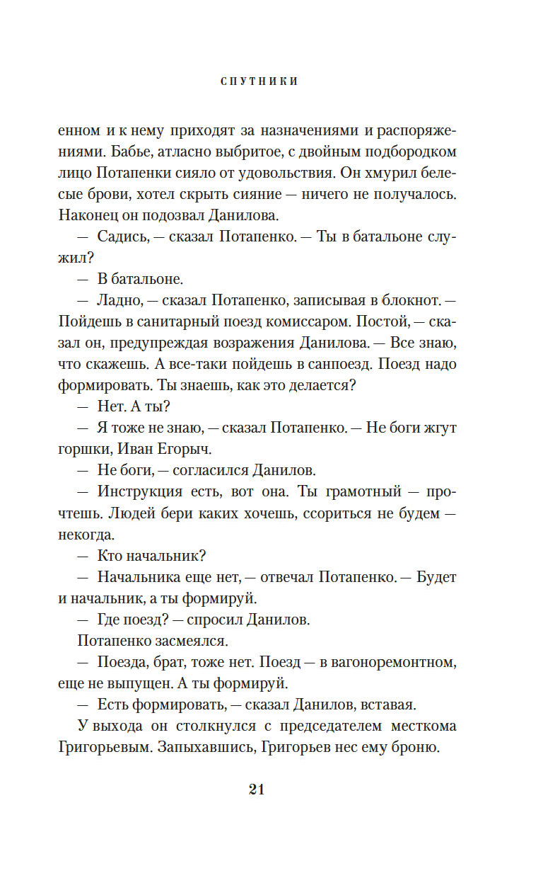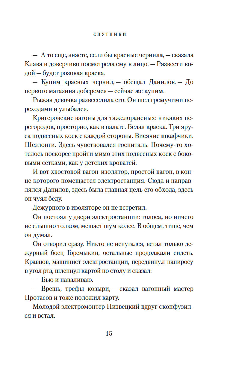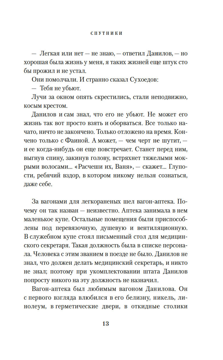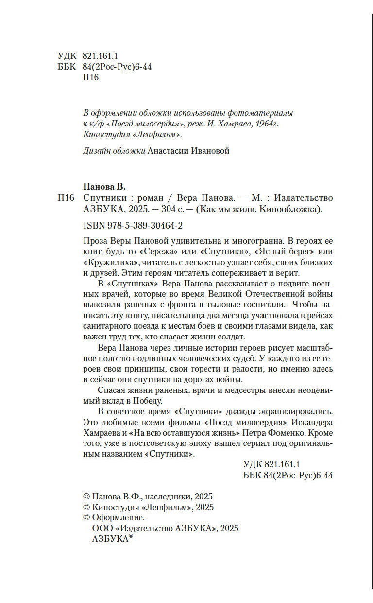 В "Спутниках" Вера Панова рассказывает о подвиге военных врачей, которые во время Великой Отечественной войны вывозили раненых с фронта в тыловые госпитали. Чтобы написать эту книгу, она два месяца участвовала в рейсах санитарного поезда к местам боев и своими глазами видела, как важен труд тех, кто спасает жизни солдат.
