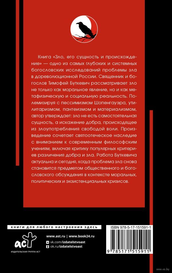 Книга "Зло, его сущность и происхождение" – одно из самых глубоких и системных богословских исследований проблемы зла в дореволюционной России. Священник и богослов Тимофей Буткевич рассматривает зло не только как моральное явление, но и как метафизическую и социальную реальность. Полемизируя с пессимизмом Шопенгауэра, утилитаризмом, пантеизмом и материализмом, автор утверждает: зло не есть самостоятельная сущность, а искажение добра, происходящее из злоупотребления свободой воли. Книга сочетает святоотеческое наследие с вниманием к современным философским учениям, включая критику популярных критериев различения добра и зла. Работа Буткевича актуальна и сегодня, когда проблема зла снова становится предметом общественного и богословского обсуждения в контексте моральных, политических и экзистенциальных кризисов.