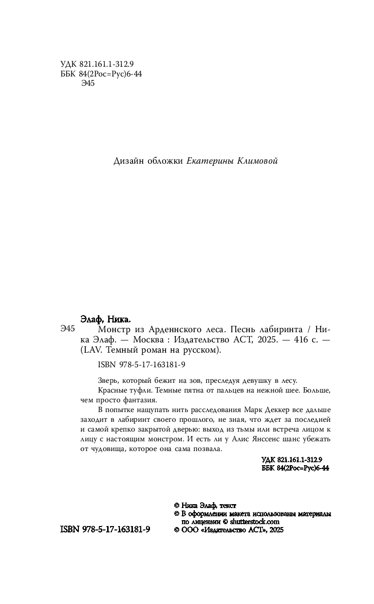 Зверь, который бежит на зов, преследуя девушку в лесу. Красные туфли. Темные пятна от пальцев на нежной шее. Больше, чем просто фантазия. В попытке нащупать нить расследования Марк Деккер все дальше заходит в лабиринт своего прошлого, не зная, что ждет за последней и самой крепко закрытой дверью: выход из тьмы или встреча лицом к лицу с настоящим монстром. И есть ли у Алис Янссенс шанс убежать от чудовища, которое она сама позвала.