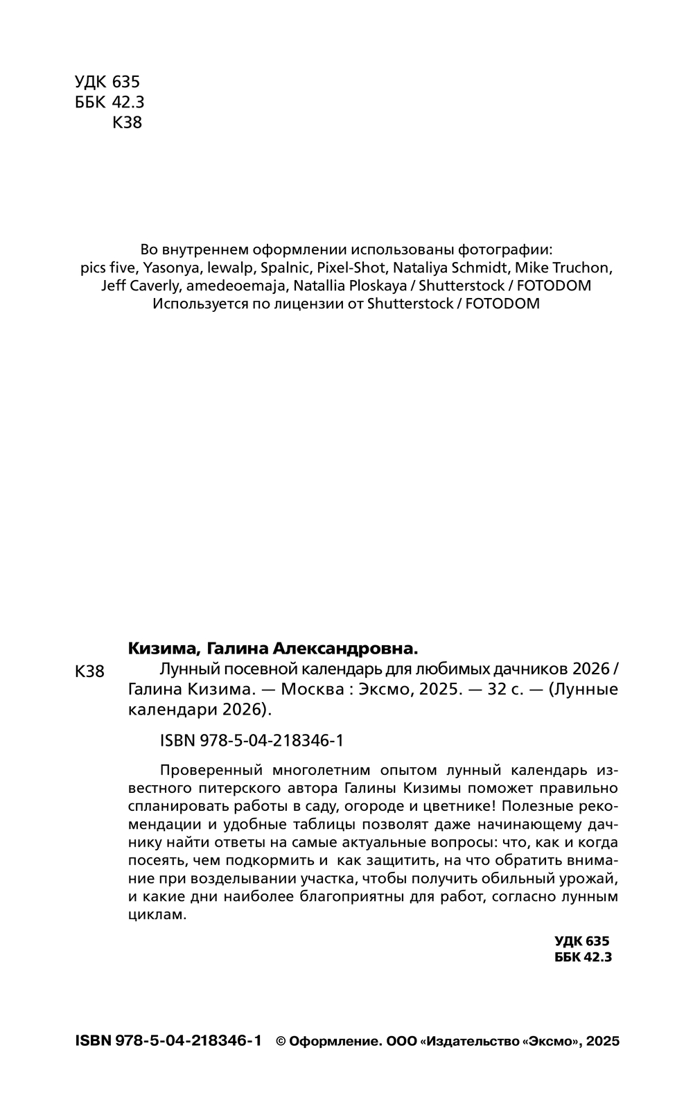 Проверенный многолетним опытом лунный календарь известного питерского автора Галины Кизимы поможет правильно спланировать работы в саду, огороде и цветнике! Полезные рекомендации и удобные таблицы позволят даже начинающему дачнику найти ответы на самые актуальные вопросы: что, как и когда посеять, чем подкормить и как защитить, на что обратить внимание при возделывании участка, чтобы получить обильный урожай и какие дни наиболее благоприятны для работ, согласно лунным циклам.