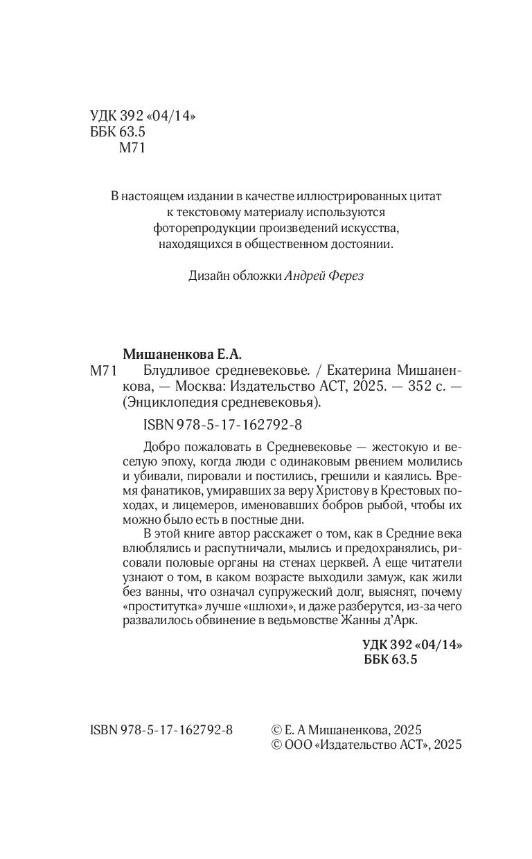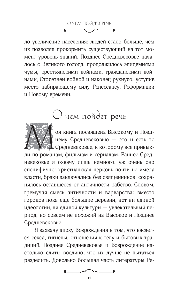 В этой книге автор расскажет о том, как в Средние века влюблялись и распутничали, мылись и предохранялись, рисовали половые органы на стенах церквей. А еще читатели узнают о том, в каком возрасте выходили замуж, как жили без ванны, что означал супружеский долг, выяснят, почему "проститутка" лучше "шлюхи", и даже разберутся, из-за чего развалилось обвинение в ведьмовстве Жанны д’Арк.