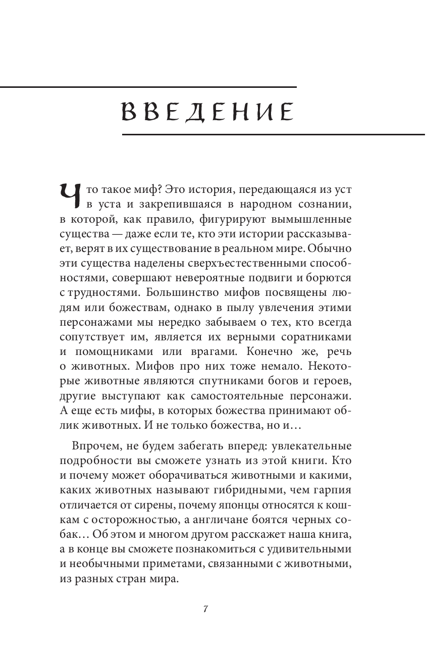 Этот фантастический бестиарий познакомит вас с удивительными гибридами, химерами, волшебными животными, птицами и рептилиями мировой мифологии – от нагов до драконов, от древнеегипетского песьеглавца Анубиса до зловещего Черного Шака с Британских островов, от ужасного Сфинкса из мифа об Эдипе до обычной домашней кошки, которая, по единодушному мнению разных народов, вовсе не так проста, как кажется на первый взгляд.
