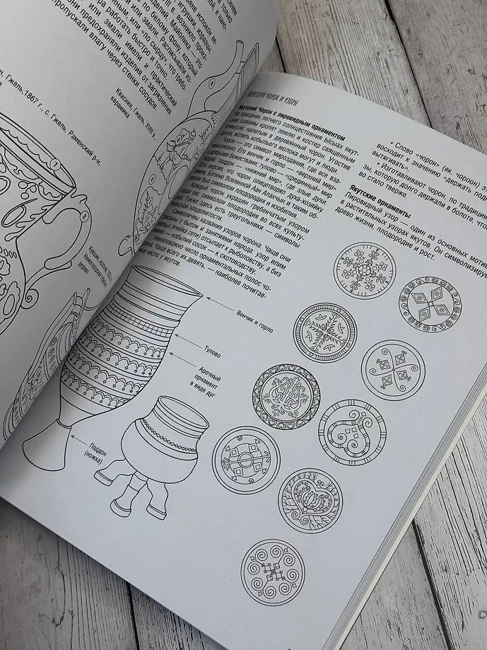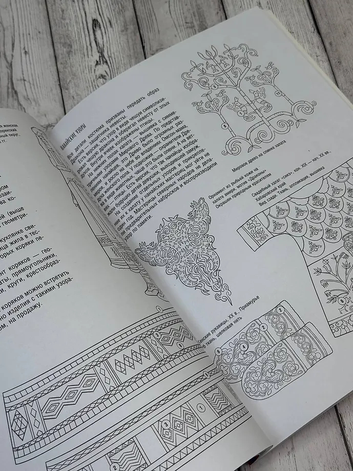 В "Атласе-раскраске" представлено более 200 детализированных контурных иллюстраций, демонстрирующих композицию, архитектуру и символику узоров.