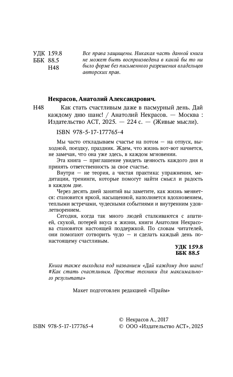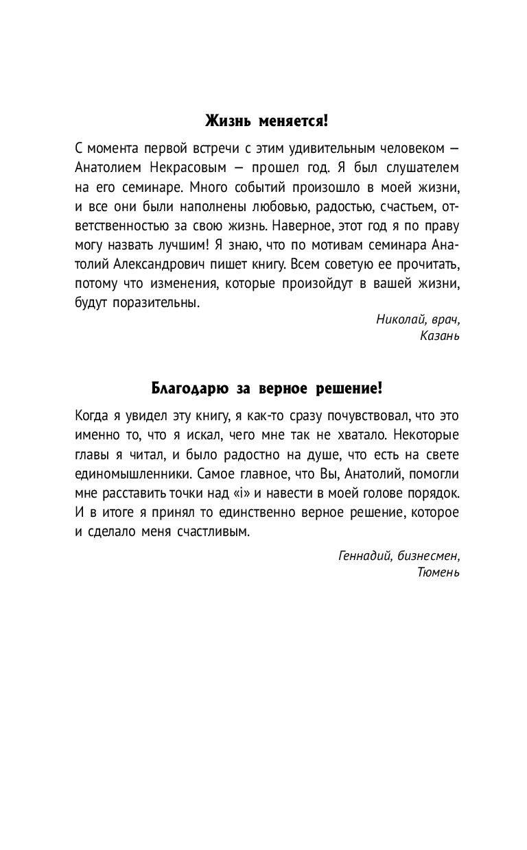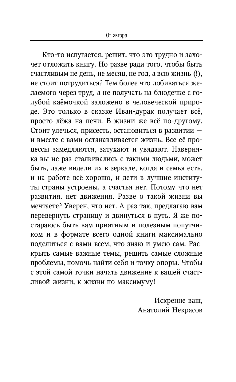 Сегодня, когда так много людей сталкиваются с апатией, скукой, потерей вкуса к жизни, книги Анатолия Некрасова становятся настоящей поддержкой. По словам читателей, они помогают сотворить чудо – и сделать каждый день по-настоящему счастливым.