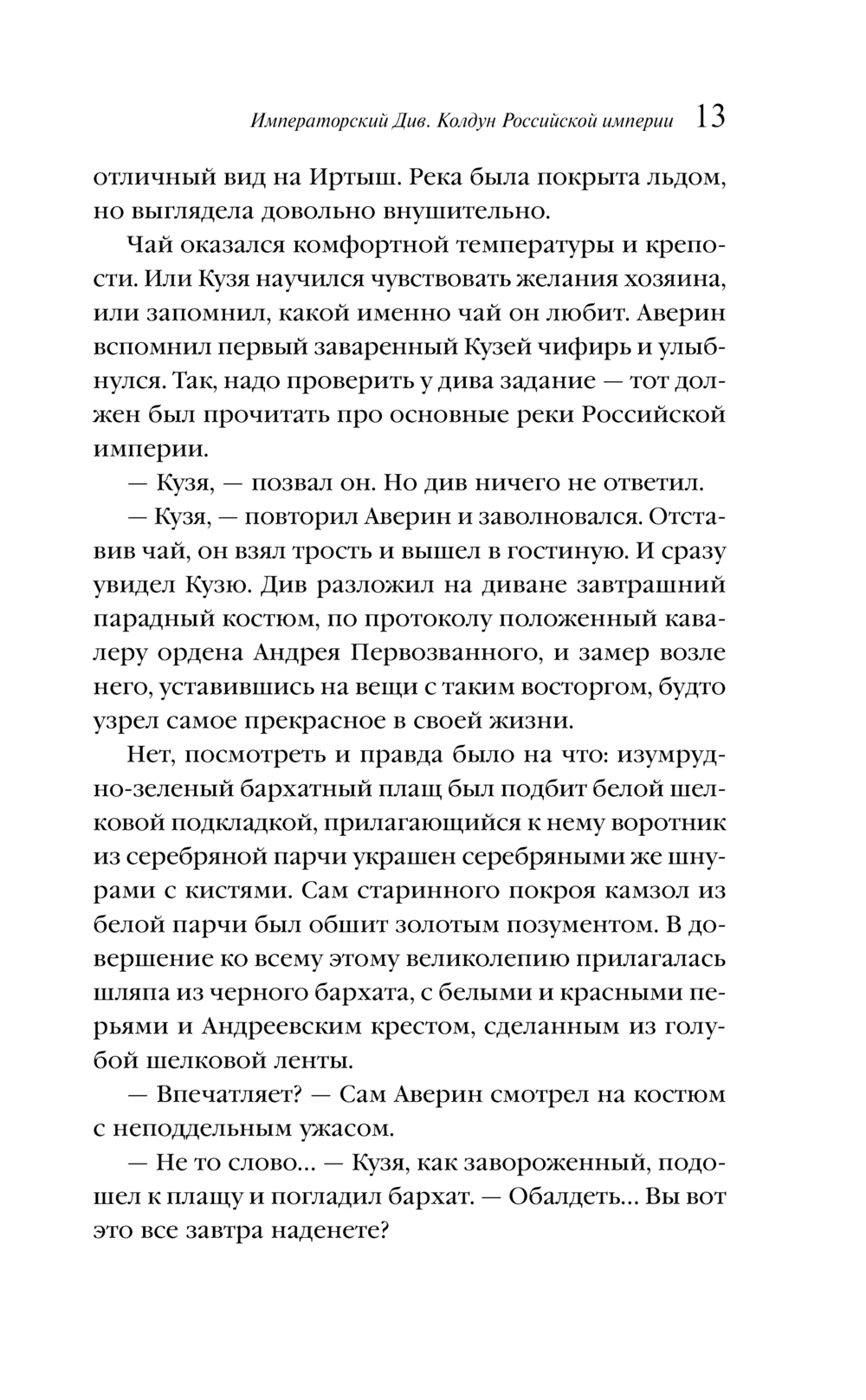 В Петербурге исчезает несколько девушек, в это же время из-подо льда достают труп убитой дивы без головы. Человеческий закон до сих пор не запрещает мучить и убивать дивов, и граф Аверин сделает все, чтобы добиться справедливости. Вместе с Кузей он ищет связь между убийством и исчезновением девушек. Делом заинтересовался сам император Александр V. Но что если его новое поручение поставит под угрозу жизнь Аверина и его близких?