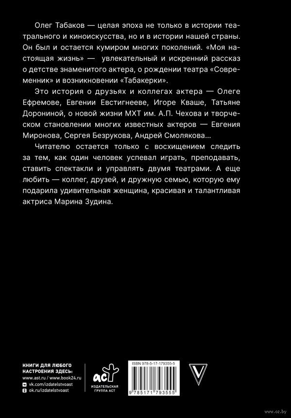 "Моя настоящая жизнь" – это увлекательный, полный интереснейших подробностей рассказ знаменитого актера о своем саратовском детстве, о переезде в Москву и учебе в Школе-студии МХАТ, о рождении театра "Современник", о возникновении "Табакерки", ее постановках, о жизни МХТ им. А.П. Чехова, о сотрудничестве с лучшими режиссерами, о тех, с кем дружил и работал актер (а среди них Г. Волчек, О. Ефремов, Е. Евстигнеев, И. Кваша, Т. Доронина, С. Безруков, В. Машков), и еще много о чем. Искренне делится Олег Павлович и своими горестями и радостями художественного руководителя двух театров, за спектаклями и гастролями которых читатель с восхищением следит на страницах книги и не перестает удивляться: как один человек успевал играть на сцене, сниматься в кино, преподавать, ставить и управлять. А еще любить – коллег, друзей и свою дружную семью, которую ему подарила удивительная женщина, красивая и талантливая актриса Марина Зудина.