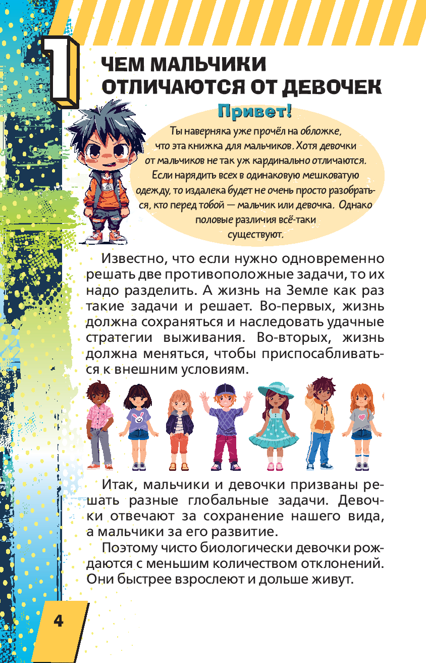 Эта книга – отличный спутник любого мальчишки в его бесконечных приключениях! Тебя ждёт множество идей для весёлого времяпровождения – как наедине с собой, так и в компании друзей. Ведь что может быть интереснее дворовых игр? Или физических опытов, которые можно провести дома? А как насчёт изобретательских задач?